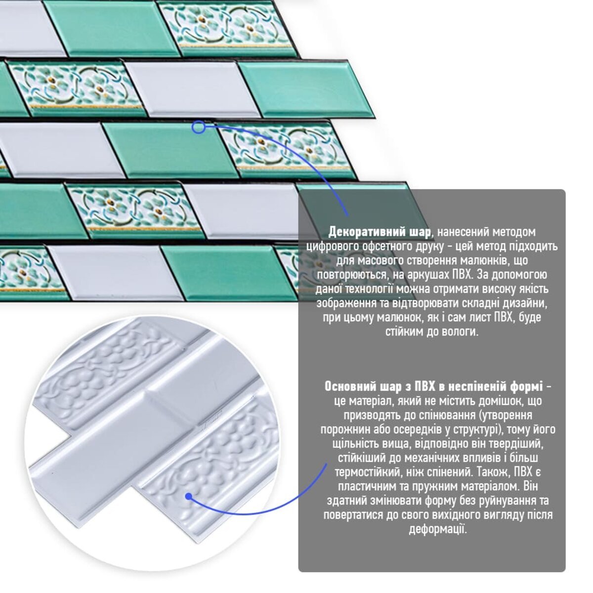 Декоративна ПВХ панель 960х480х4мм Цегла зелений орнамент SW-00001429