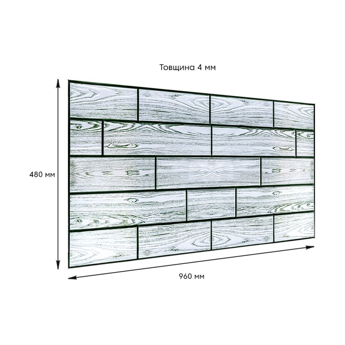 Розмір ПВХ панелі – 960ммх480мм. Товщина – 4 мм.