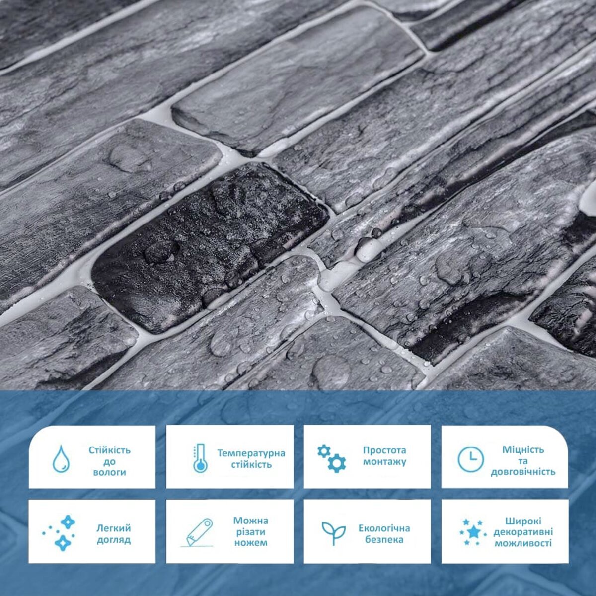 Панелі дуже прості у монтажі, практичні у використанні та довговічні. Для монтажу панелей Вам потрібен буде: клей для ПВХ, ножиці або монтажний ніж, рівень чи лінійка, скотч (для фіксації свіжих панелей).