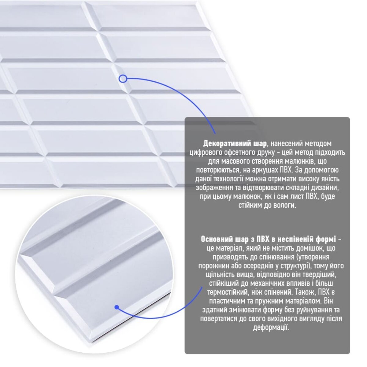 Панелі дуже прості у монтажі, практичні у використанні та довговічні. Для монтажу панелей Вам потрібен буде: клей для ПВХ, ножиці або монтажний ніж, рівень чи лінійка, скотч (для фіксації свіжих панелей).