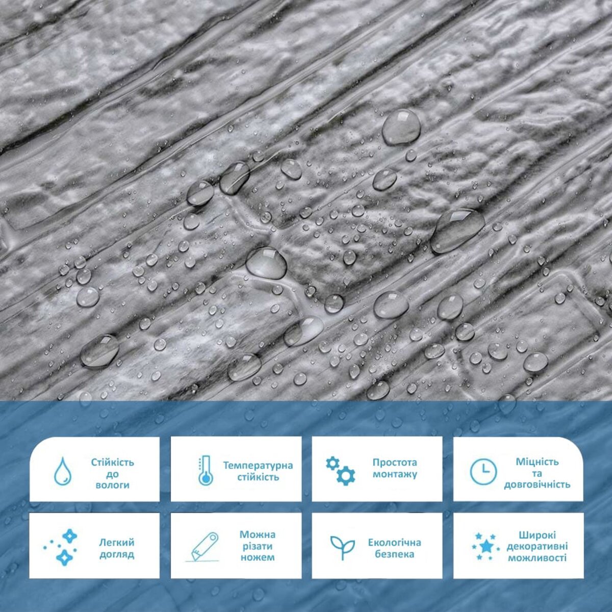 Панелі дуже прості у монтажі, практичні у використанні та довговічні. Для монтажу панелей Вам потрібен буде: клей для ПВХ, ножиці або монтажний ніж, рівень чи лінійка, скотч (для фіксації свіжих панелей).