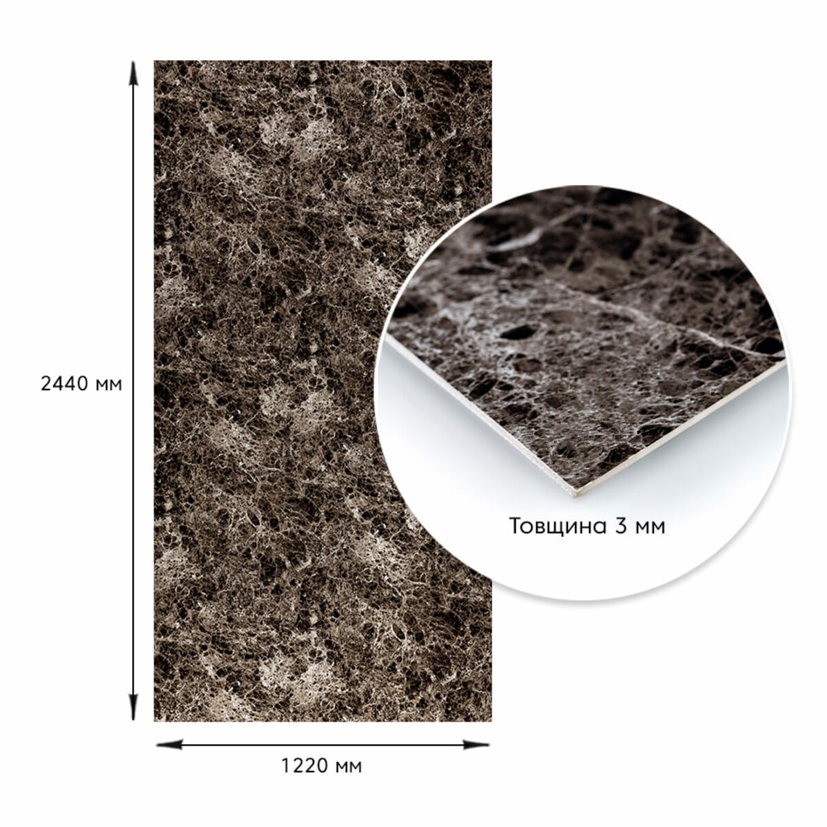 Декоративна ПВХ плита 1,22м х 2,44м х 3мм Темно-сірий мармур SW-00001407