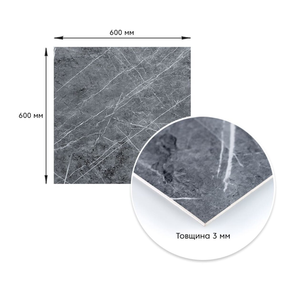 Декоративна ПВХ плита 600х600х3мм Сірий натуральний мармур (S) SW-00001627