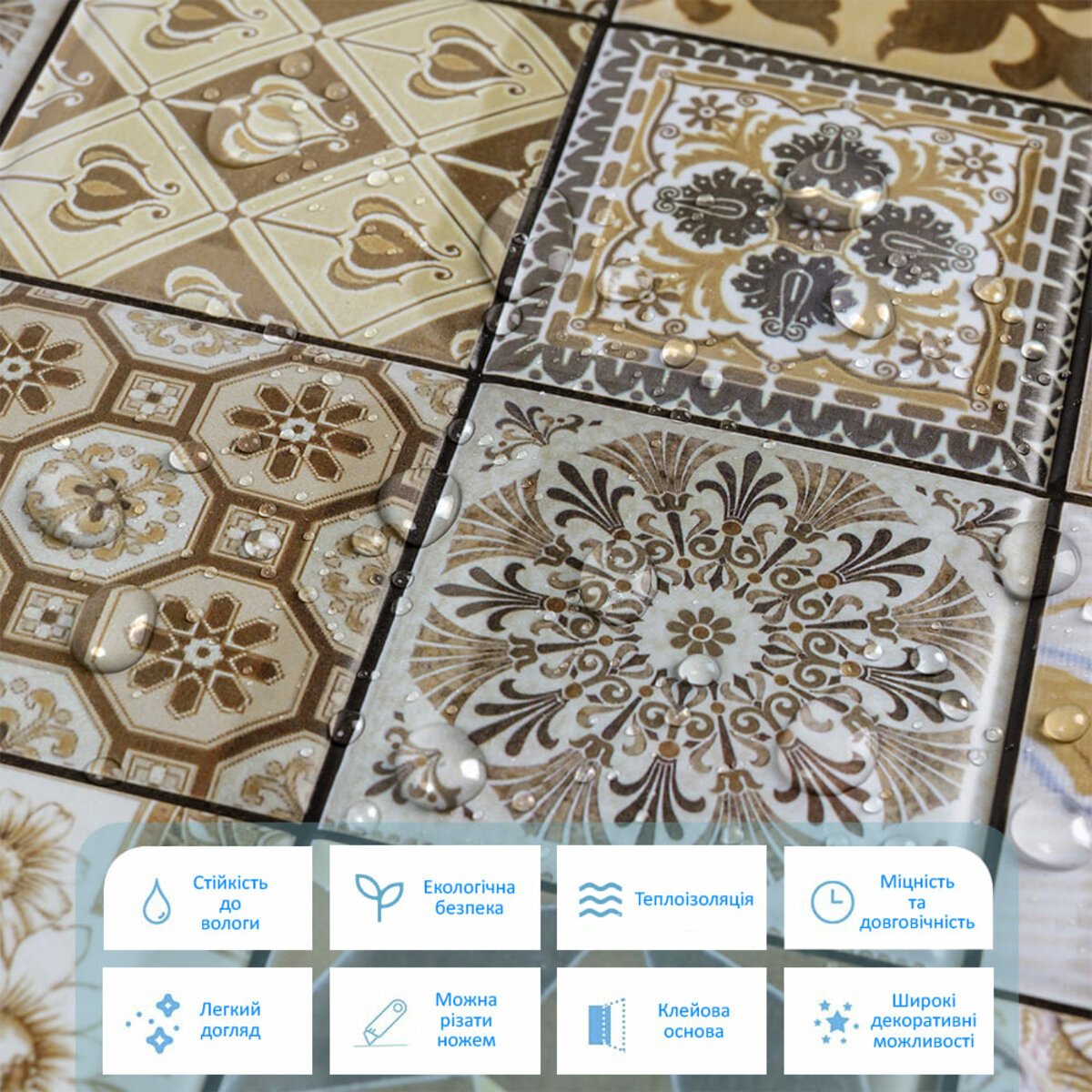 Самоклеючі декоративні панелі СПП – новинка у світі самоклейок. Це невеликі плитки із трендовим малюнком під натуральні матеріали. Прозорий захисний шар із поліуретану захищає покриття від стирання та механічних пошкоджень.