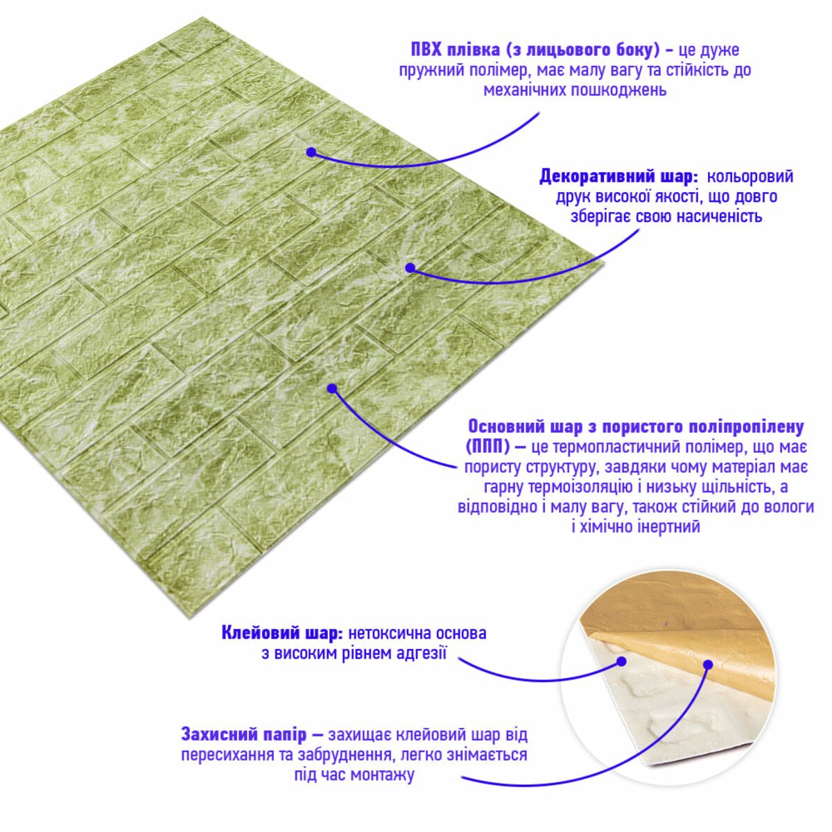 Декоративна 3D панель самоклейка Глибокий зелений (цегла) (069) SW-00000171