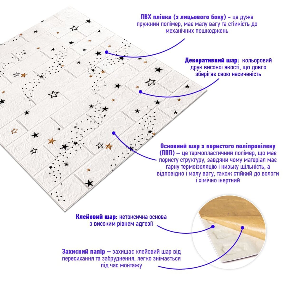 Декоративна 3D панель самоклейка 700х770х3мм Зірки (цегла) (021-3) SW-00000693