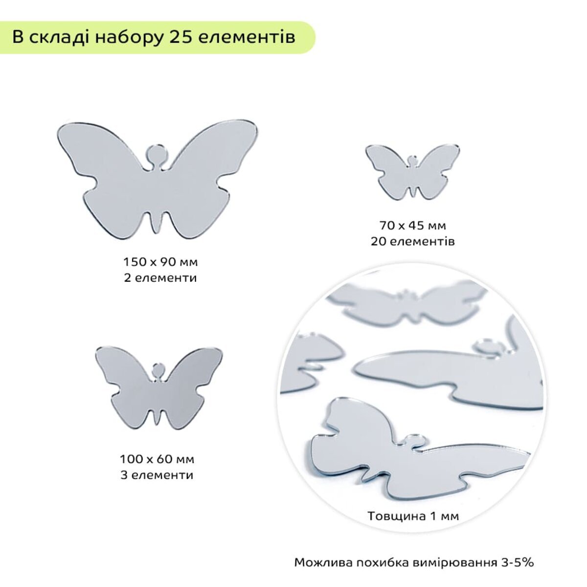Дзеркальний декор акриловий самоклеючий Метелики срібло,25шт (D) SW-00002521
