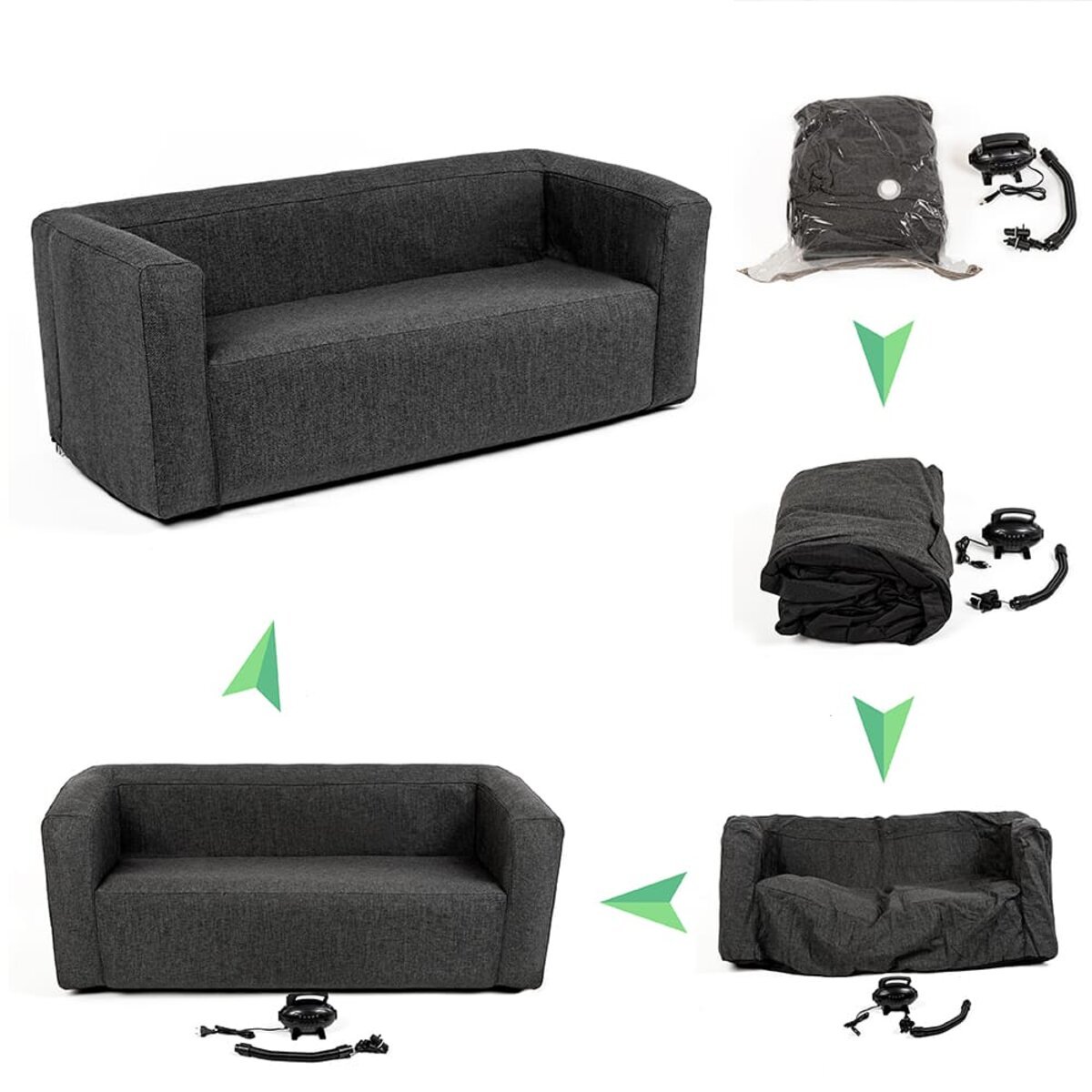 Швидка збірка. Надувні меблі швидко надуваються за допомогою насоса, що входить до комплекту, і готова до використання всього за кілька хвилин. Це особливо зручно, коли потрібно швидко змінити інтер’єр або створити комфортне місце для відпочинку.