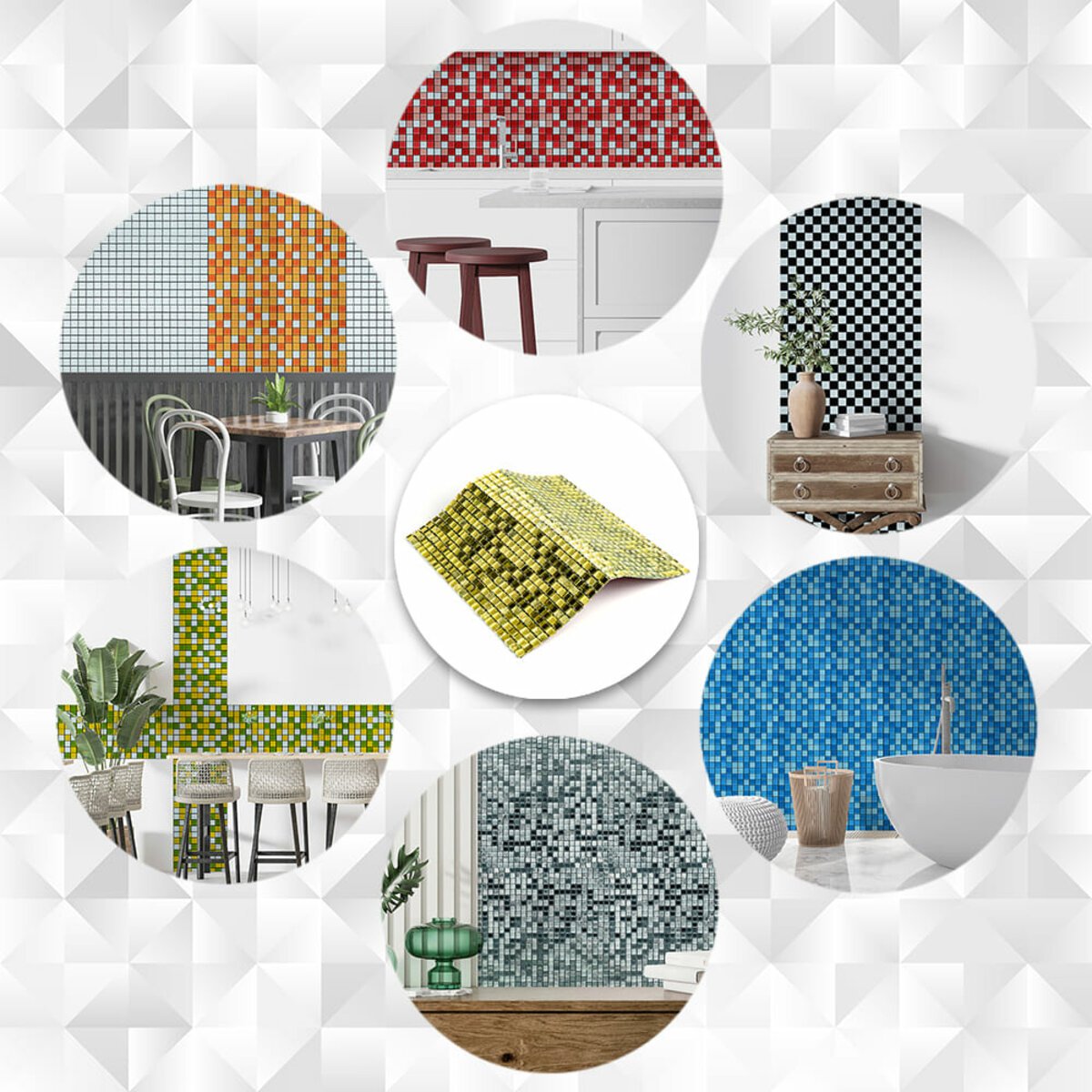 • Водостійкість та жаростійкість: Скляна мозаїка на клейовій основі стійка до впливу вологи та температурних перепадів, що робить її ідеальним вибором для ванних кімнат, кухонь і душових кабін. Покриття запобігає утворенню плісняви, забезпечуючи довговічність та безпеку використання у вологих приміщеннях.