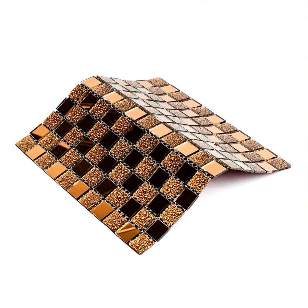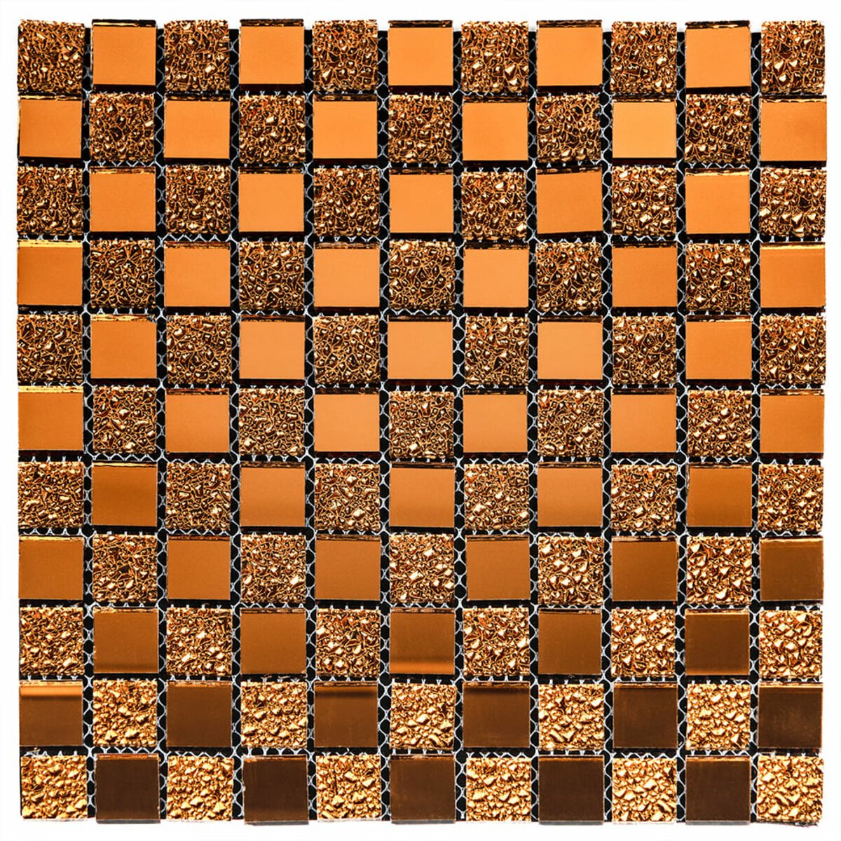 Сітка. Кожен шматочок мозаїки, прикріплений до основи з полімерної або скловолоконної сітки що дозволяє легко монтувати всю плитку як цілісне покриття.