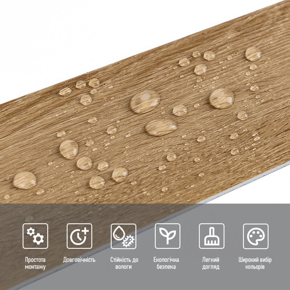 1. Полімерний шар, що захищає від потертостей та дрібних механічних пошкоджень, забезпечує довговічність використання, а УФ захист допомагає запобігти вигоранню, зберігаючи колір насиченим, за рахунок чого молдінг довго має свій первинний естетичний вигляд.