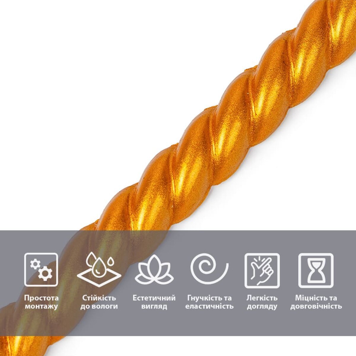 Гнучкість та еластичність: завдяки високій гнучкості молдинг щільно повторює контури навіть вигнутих або нерівних поверхонь, не утворюючи складок чи тріщин.