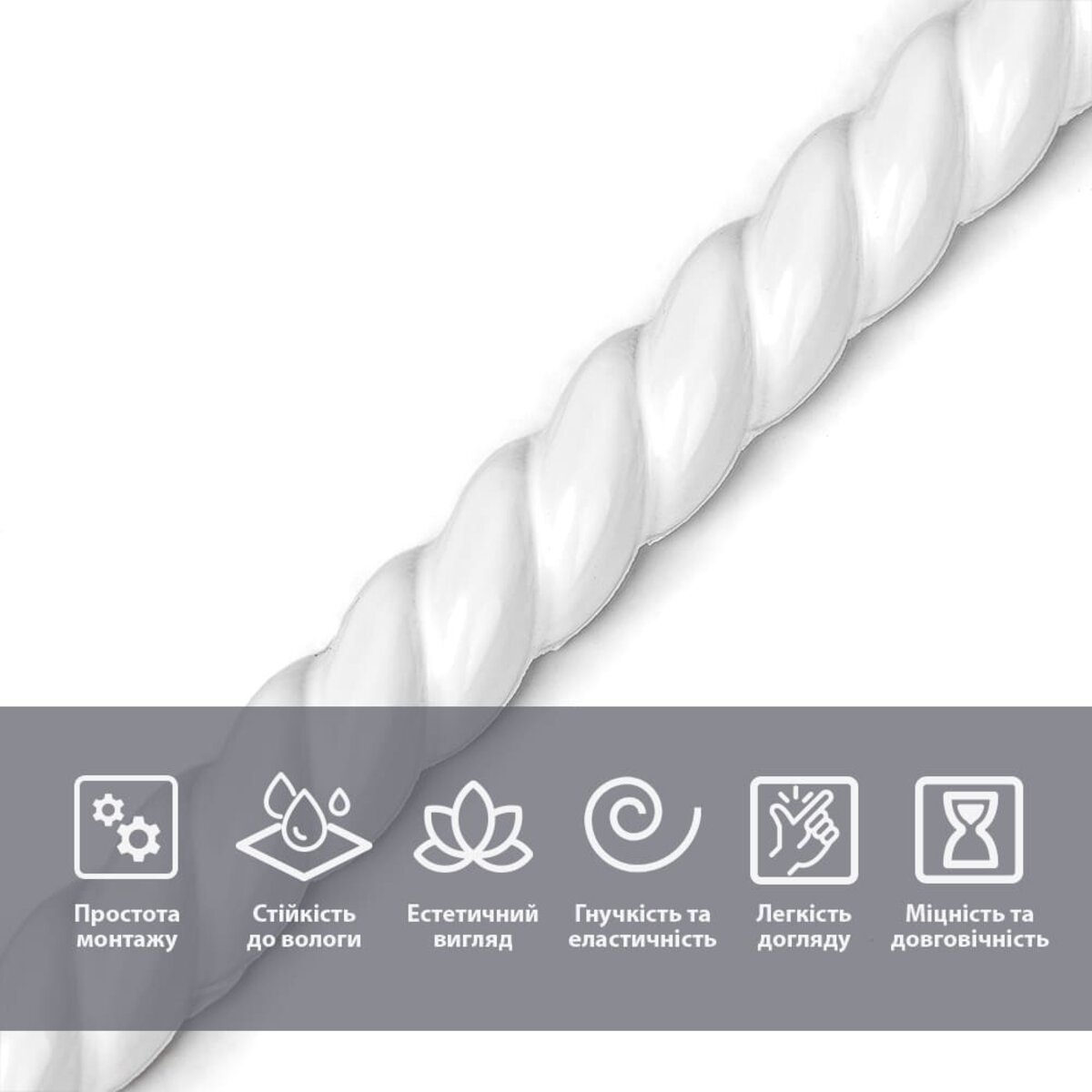 Гнучкість та еластичність: завдяки високій гнучкості молдинг щільно повторює контури навіть вигнутих або нерівних поверхонь, не утворюючи складок чи тріщин.