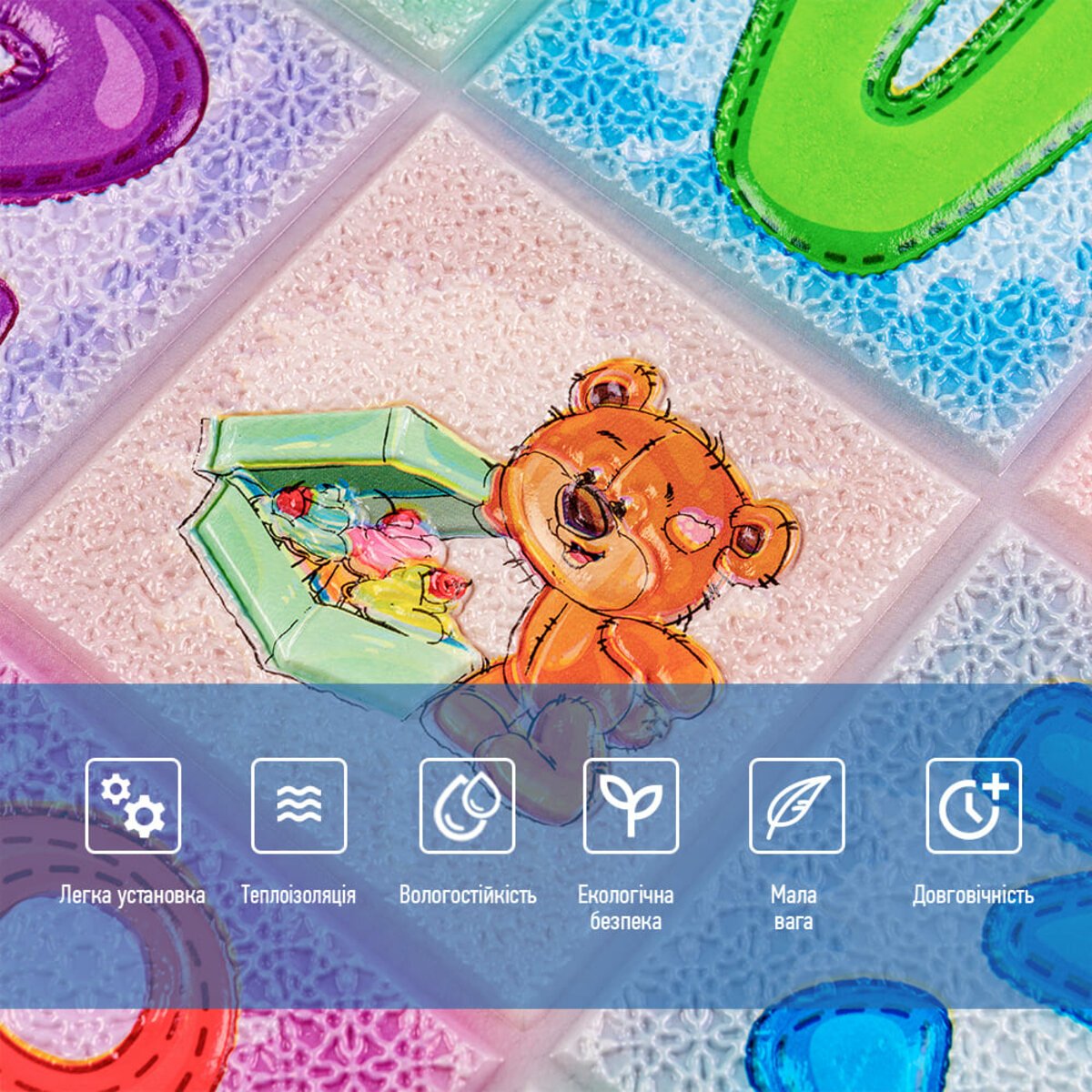 - Легкість монтажу: наявність клейового шару дозволяє встановити панелі без необхідності застосування додаткових матеріалів.