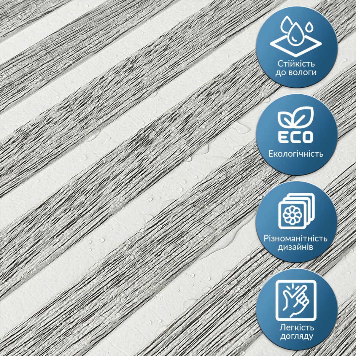3. Легкість монтажу: наявність клейового шару дозволяє встановити панелі без необхідності застосування додаткових матеріалів.