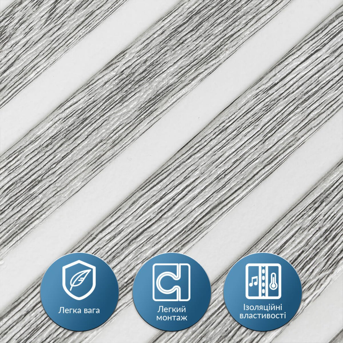 3D панелі самоклеючі – декоративне покриття для стін, виконане з легкого та міцного матеріалу – пористого поліпропілену (ППП). Основна особливість – рельєфний малюнок у вигляді рейок у широкому різноманітті кольорів та наявність клейового шару, що дозволяє встановити панелі без необхідності застосування додаткових матеріалів.