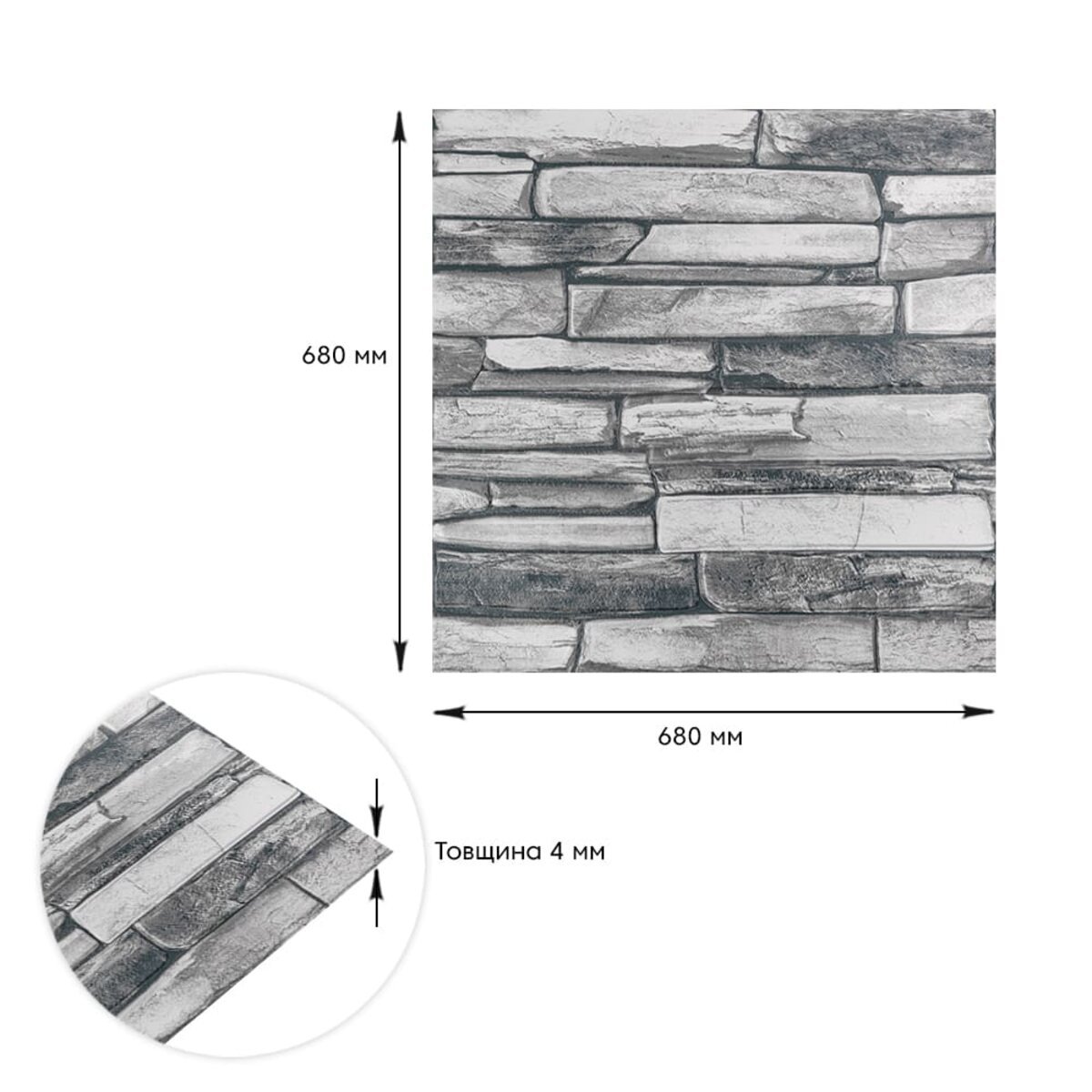 Панель стінова 3D 680х680х4мм Сірий сланець SW-00002003