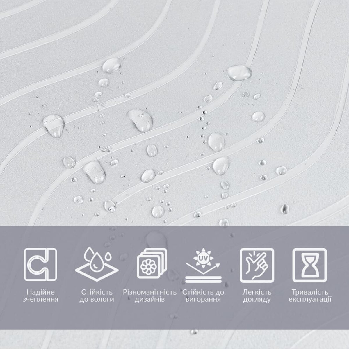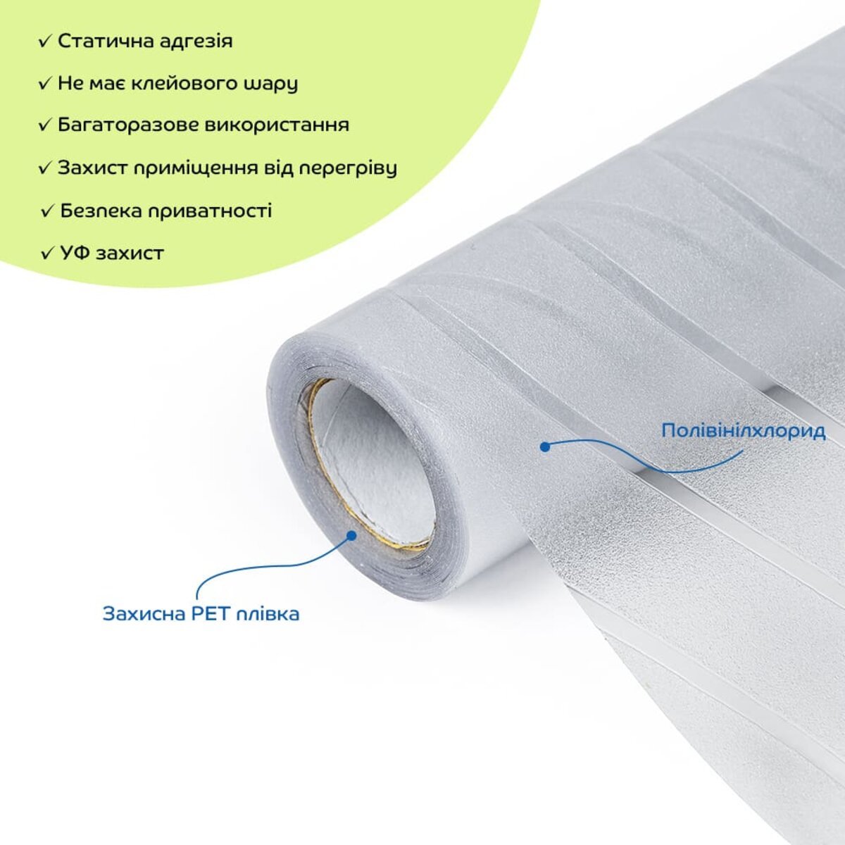 • Універсальність та легкість в монтажі: ПВХ плівки можна легко різати ножицями або монтажним ножем, що дозволяє використовувати їх у різних місцях: на вікнах, розсувних дверях, кухонних шафах та інших скляних поверхнях.