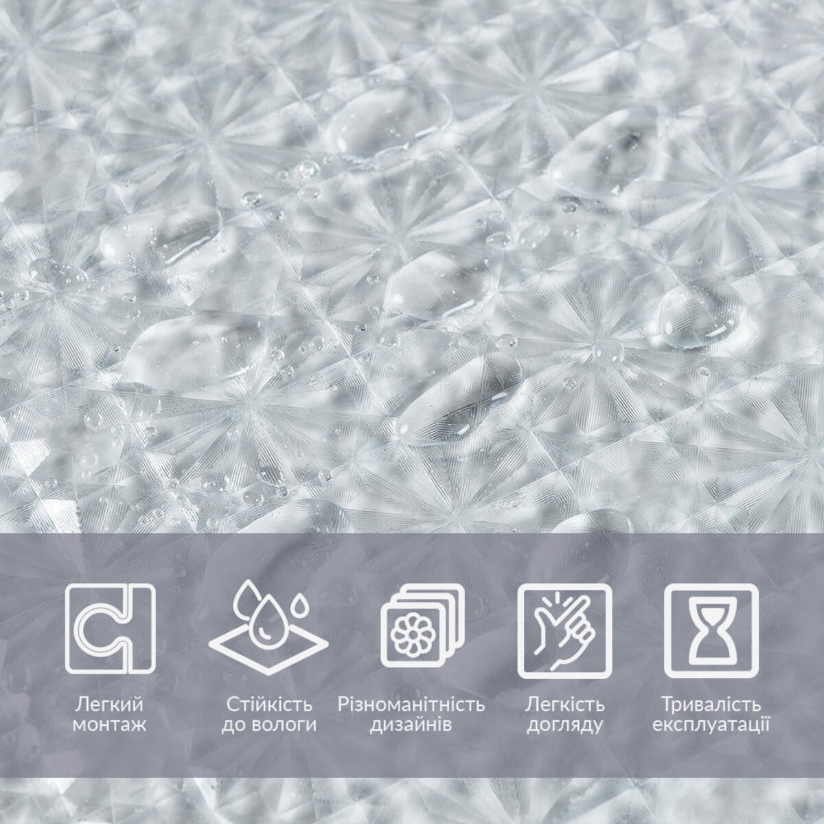 Легкість у використанні: Плівки не потребують клею для установки, що спрощує процес нанесення та видалення. Завдяки мильній воді можна легко виправити положення плівки під час монтажу.