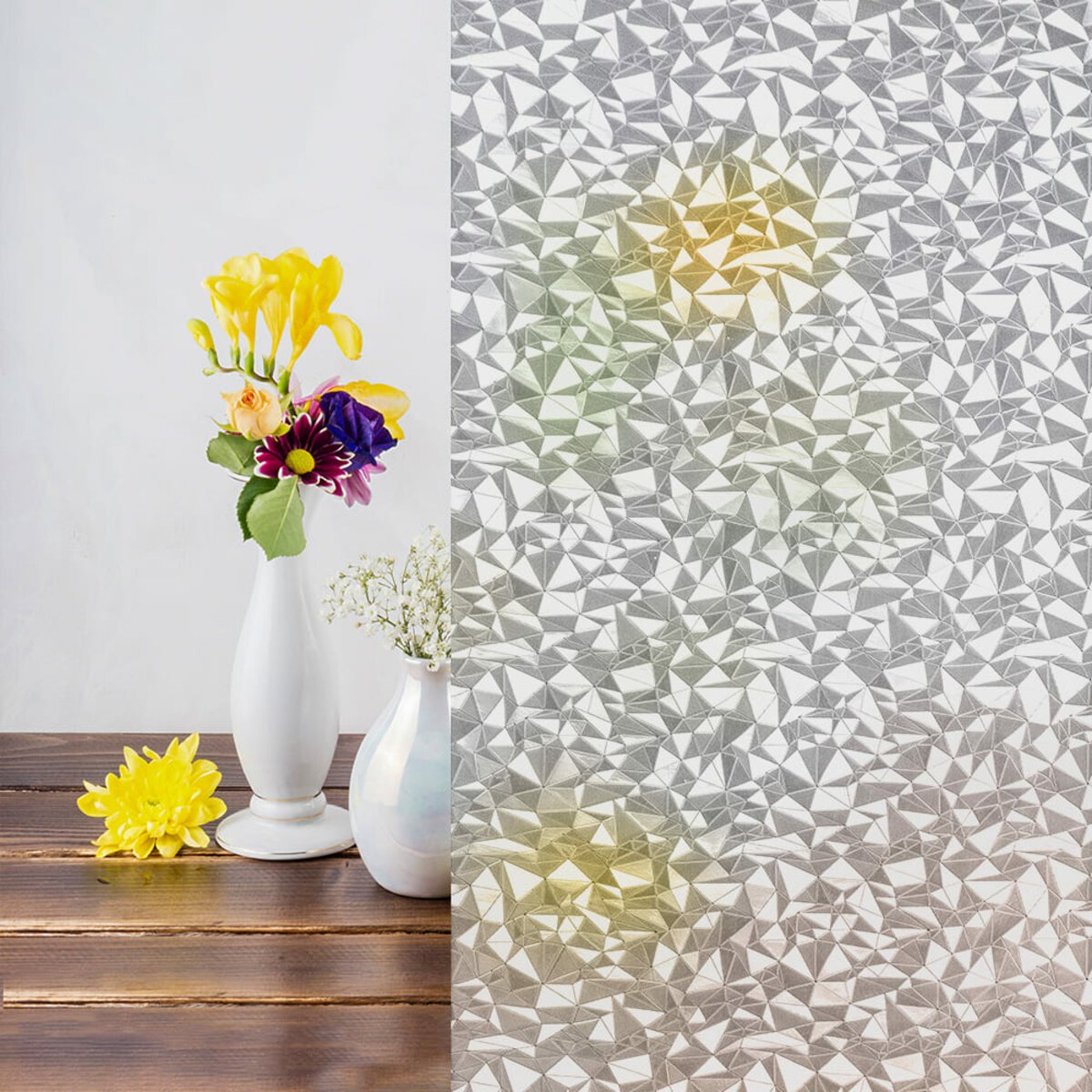 Віконна ПВХ-плівка – це декоративний матеріал, призначений для прикраси скляних поверхонь. Вона забезпечує приватність, захищає від ультрафіолетового випромінювання та додає естетичної привабливості вашому інтер’єру. Легко наноситься на будь-яке скло, перетворюючи його на непрозору поверхню та обмежуючи видимість через скло.