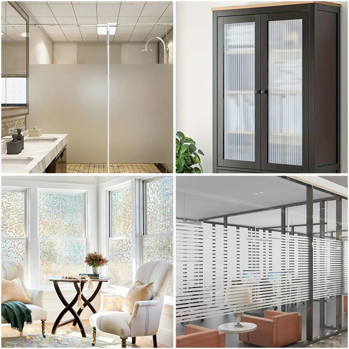 • Універсальність та легкість в монтажі: ПВХ плівки можна легко різати ножицями або монтажним ножем, що дозволяє використовувати їх у різних місцях: на вікнах, розсувних дверях, кухонних шафах та інших скляних поверхнях.