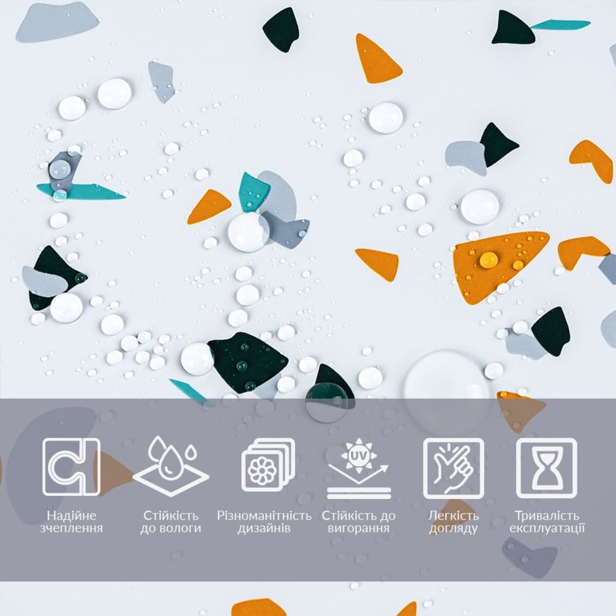 Вологостійкість: завдяки ламінації, плівка має підвищену стійкість до вологи, що робить її ідеальною для використання у приміщеннях з підвищеною вологістю, таких як кухня чи ванна кімната.