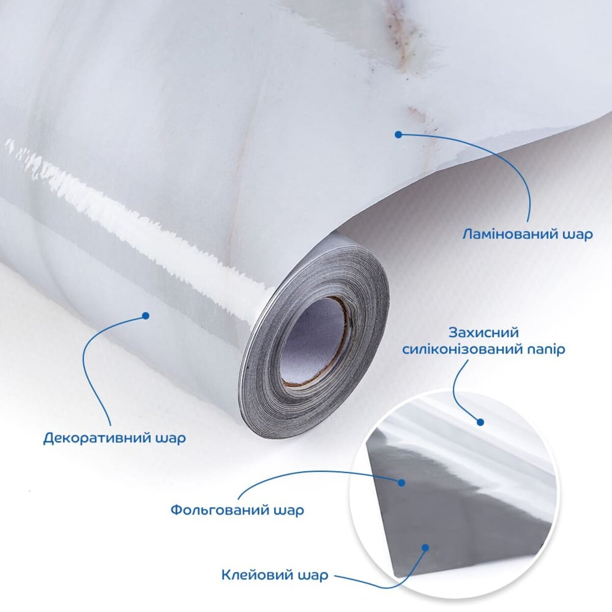 • Вологостійкість: завдяки ламінації, плівка має підвищену стійкість до вологи, що робить її ідеальною для використання у приміщеннях з підвищеною вологістю, таких як кухня чи ванна кімната.