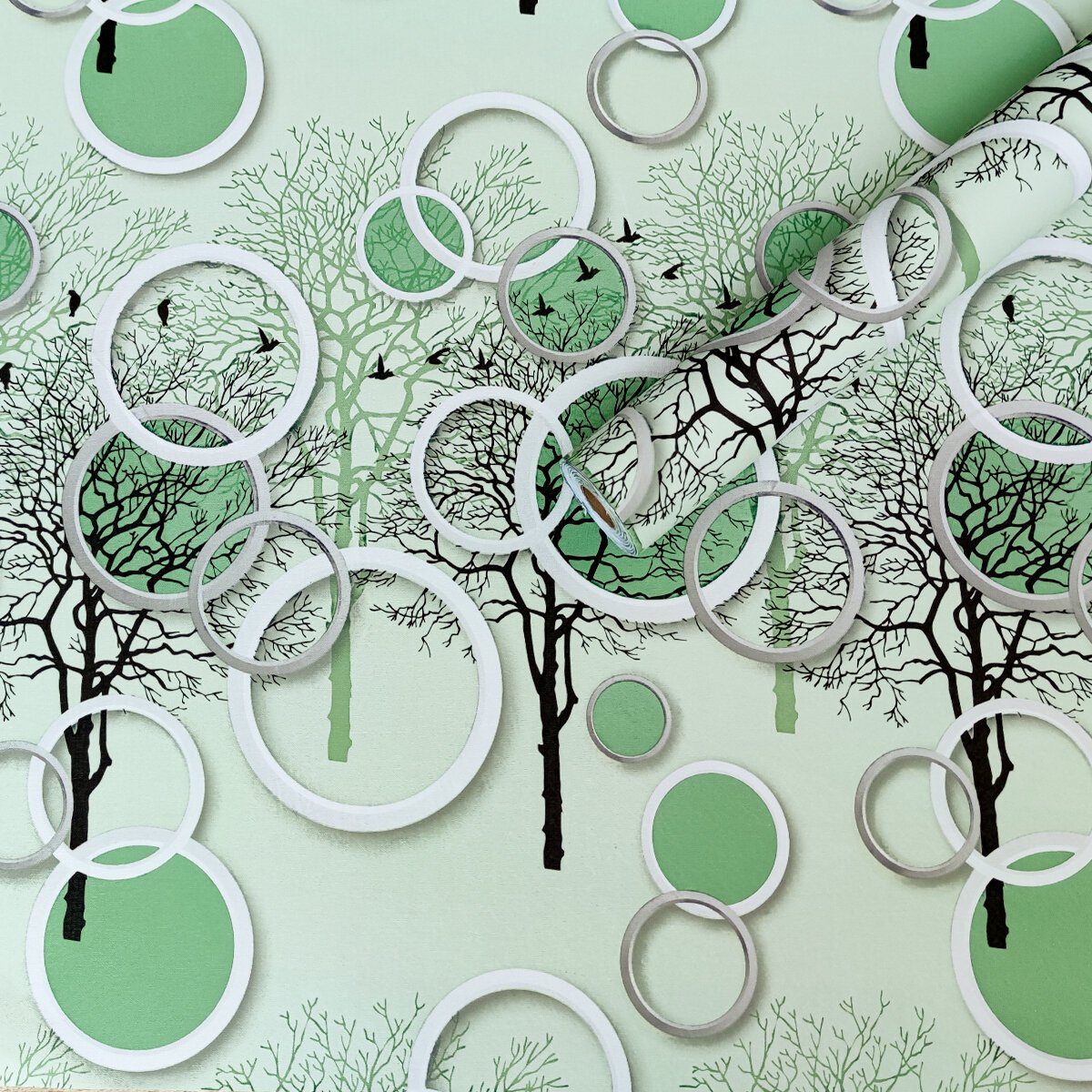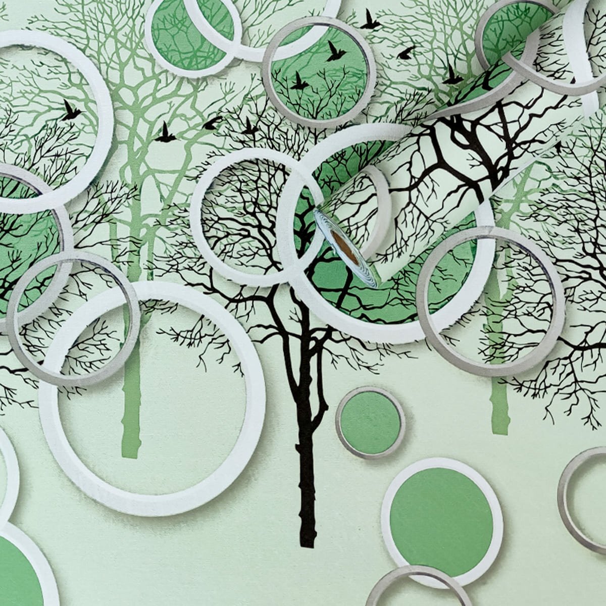Плівка самоклеюча на паперовій основі 0,45х10м х 0,07мм Чорні та зелені дерева SW-00002440