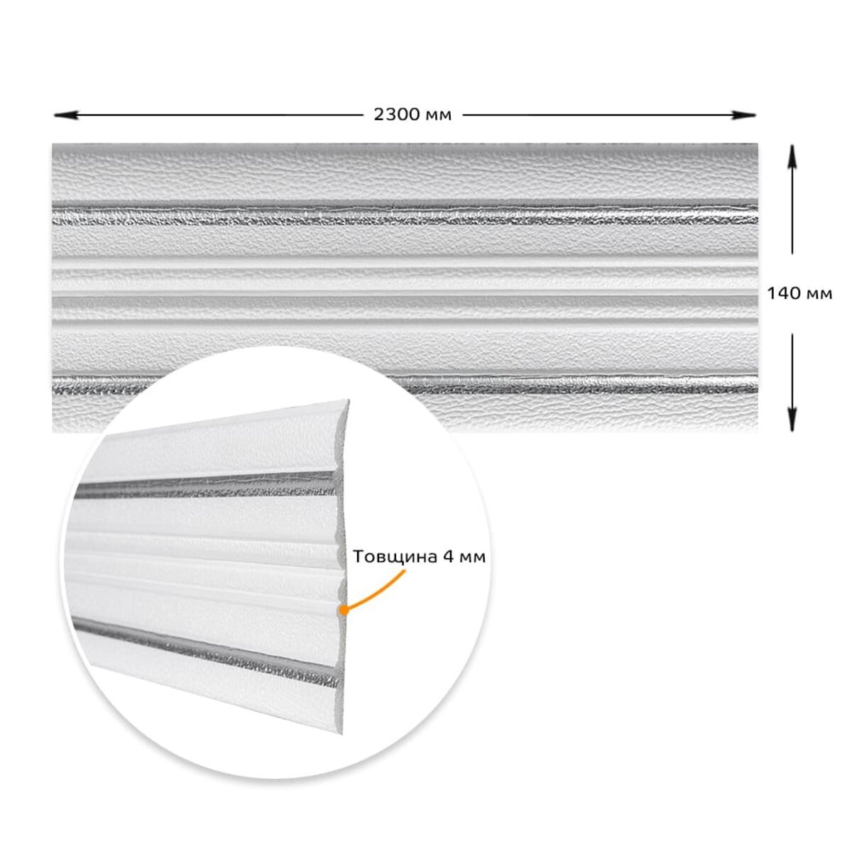 Плінтус РР самоклеючий 2300х140х4мм Білий з сірою смужкою (D) SW-00001809