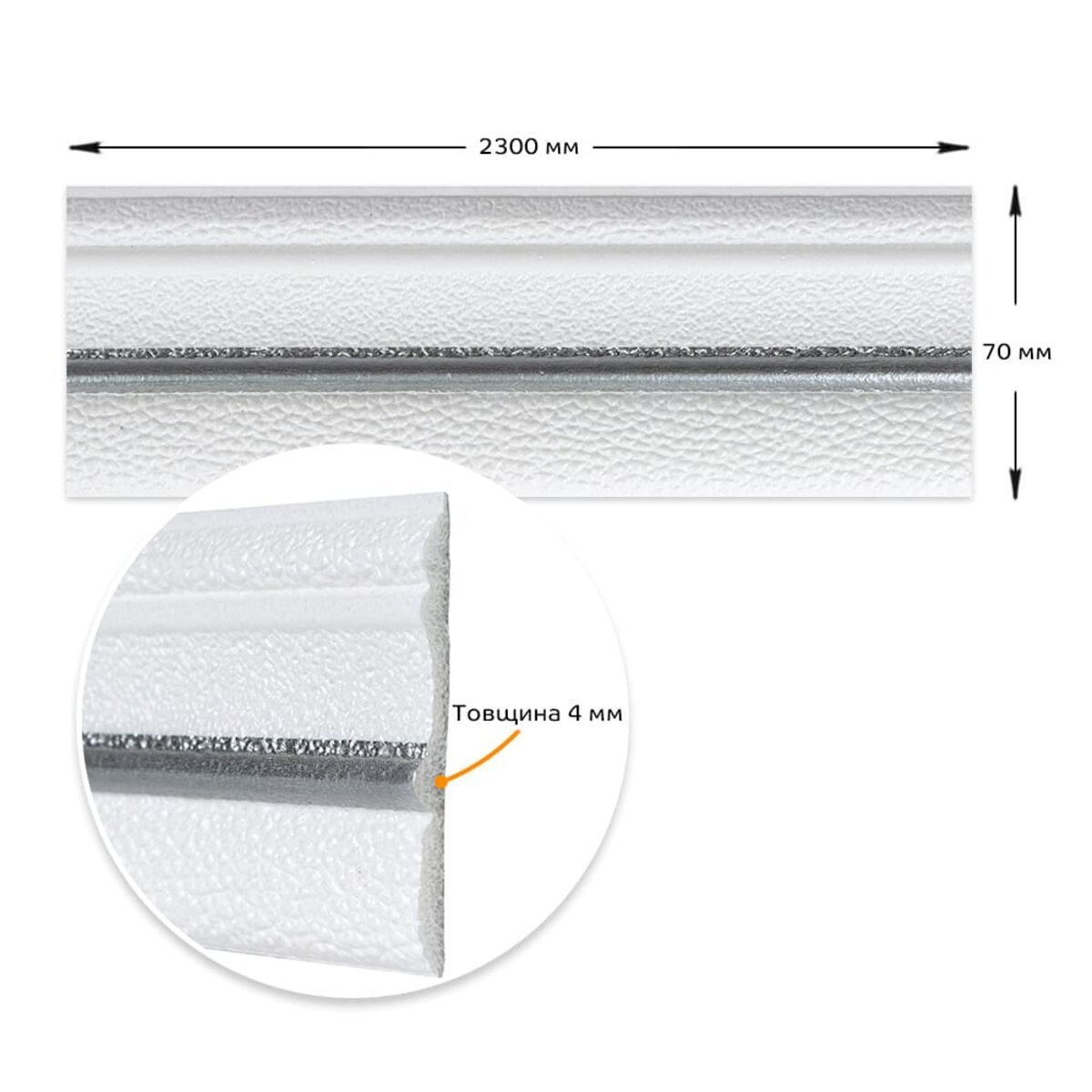 Плінтус РР самоклеючий 2300х70х4мм Білий з сірою смужкою (D) SW-00001833