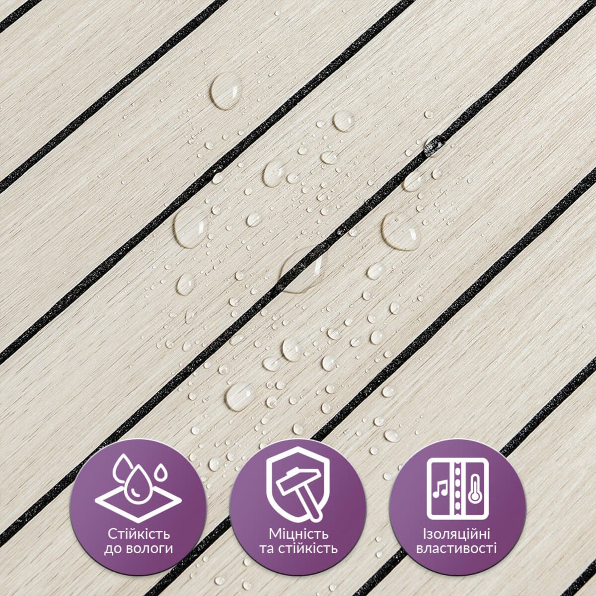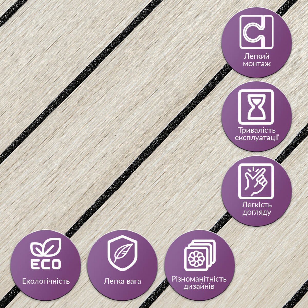 • Легкий догляд: Вінілові рейки легко миються, не вимагають спеціальних засобів для очищення і не вбирають бруд.