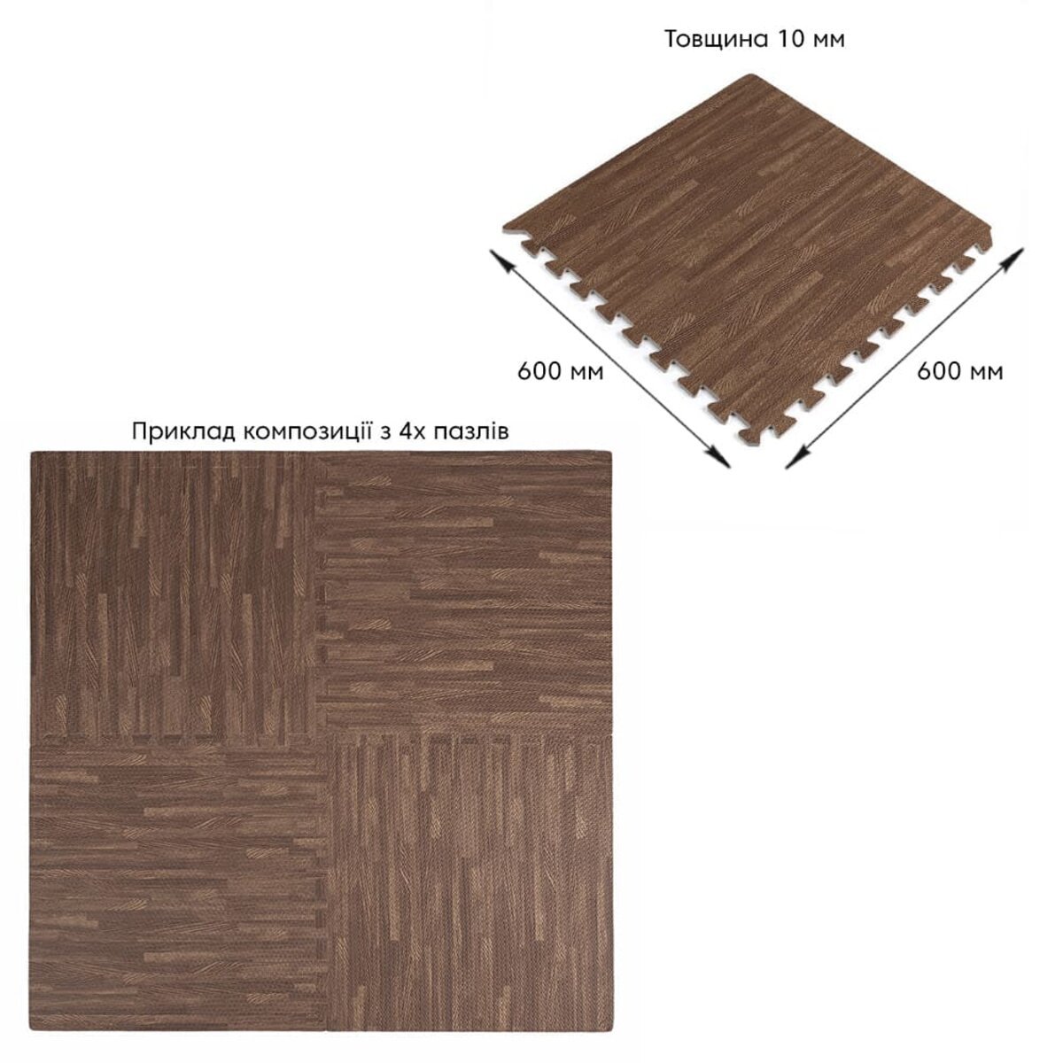Підлога пазл – модульне підлогове покриття 600x600x10мм Коричневе дерево (МР6) SW-00000204