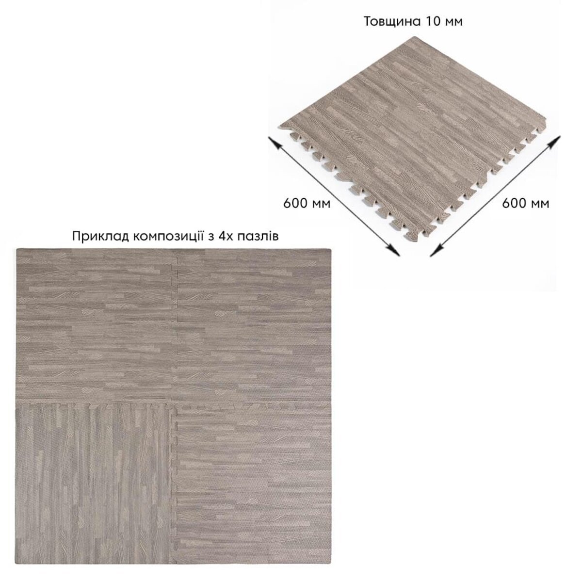 Підлога пазл – модульне підлогове покриття 600x600x10мм Сіре дерево (МР9) SW-00000209