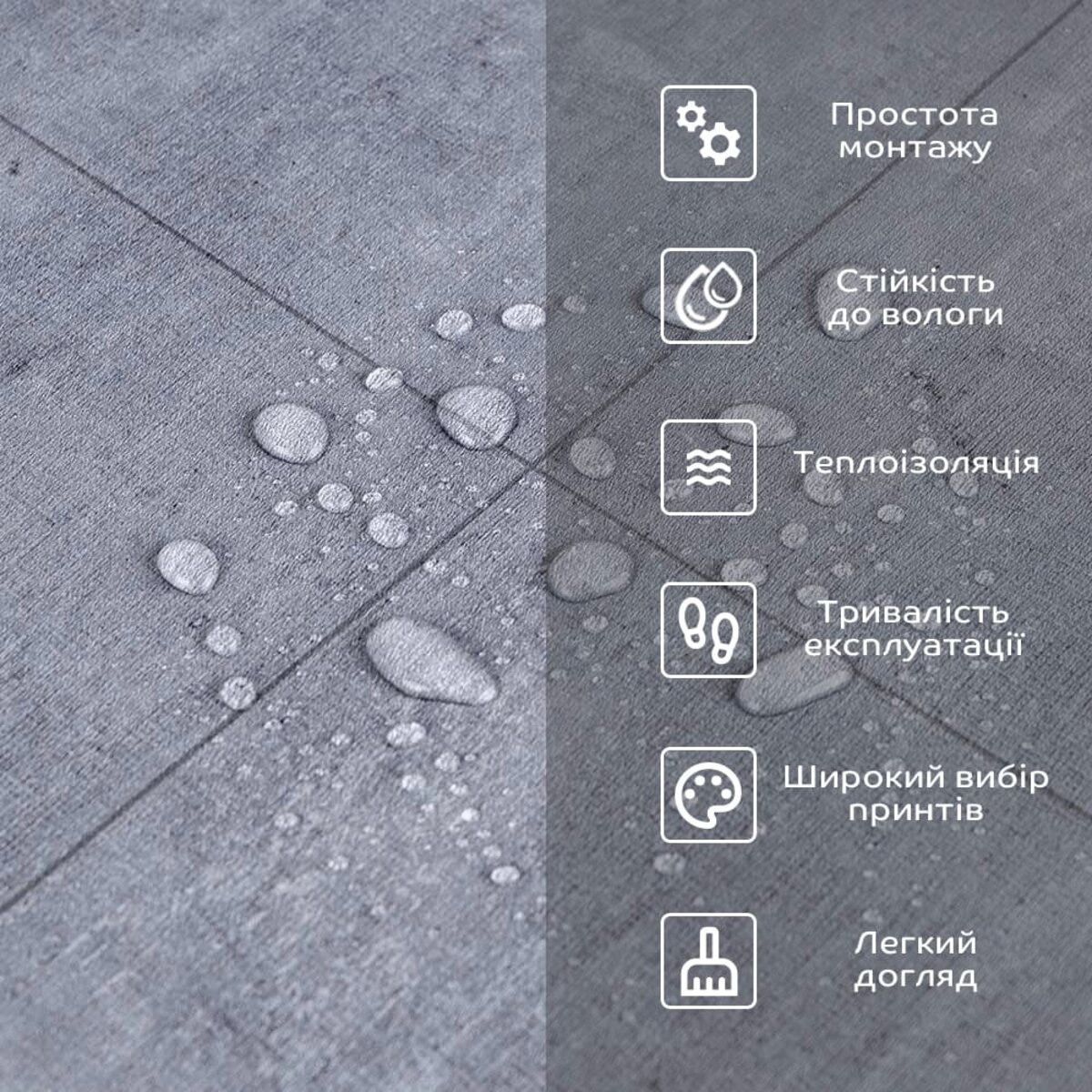 - Стійкість до вологи: підлогове IXPE покриття вологостійке, що робить його відмінним вибором для ванних кімнат, кухні та інших приміщень з підвищеною вологістю, матеріал стійкий також до дії пари та появи цвілі;