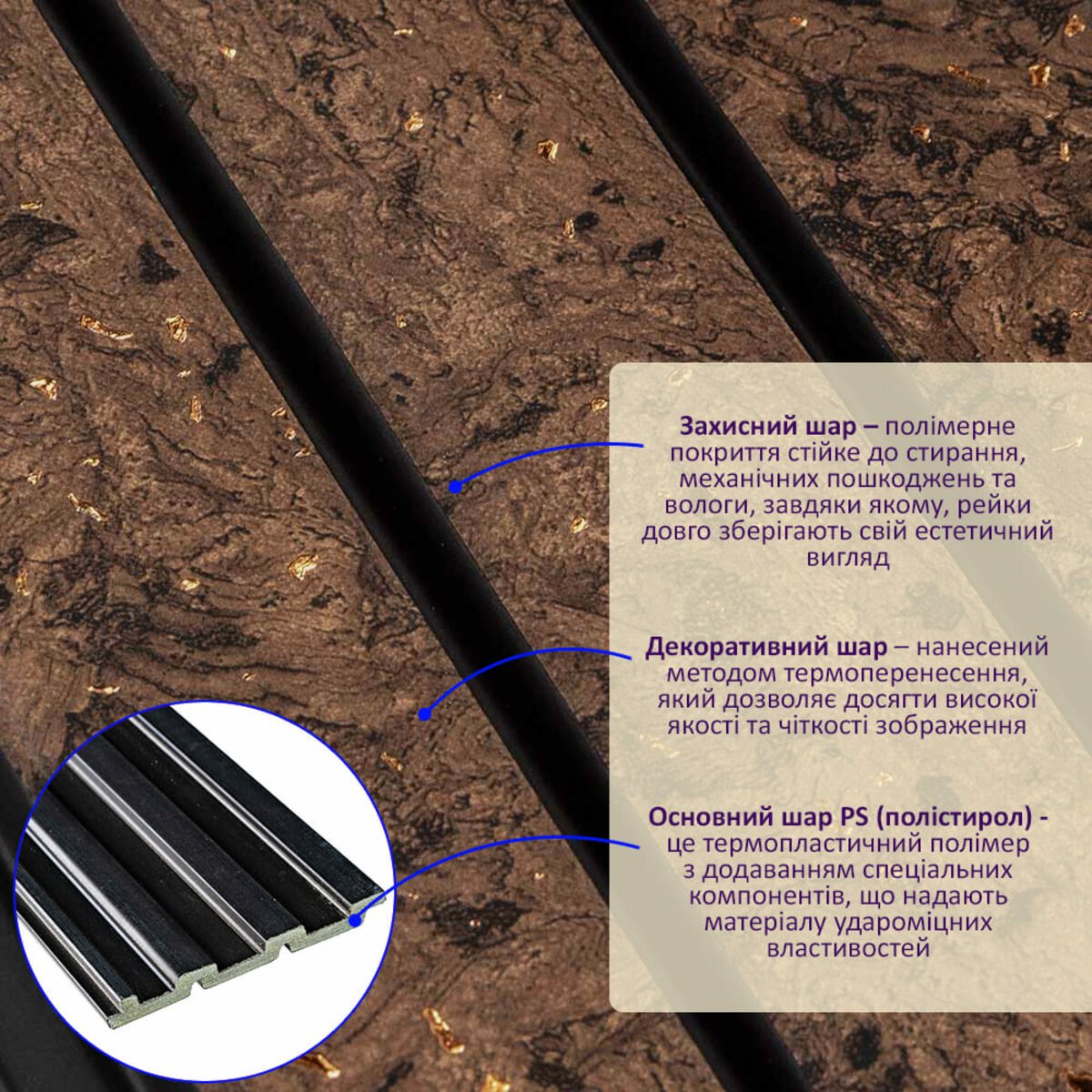 Рейка декоративна PS 2900х115х12мм Темно-коричневий із золотими вкрапленнями SW-00001737