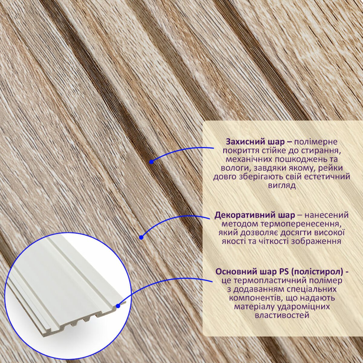 Рейка декоративна PS 2900х117х12мм Дуб SW-00002136