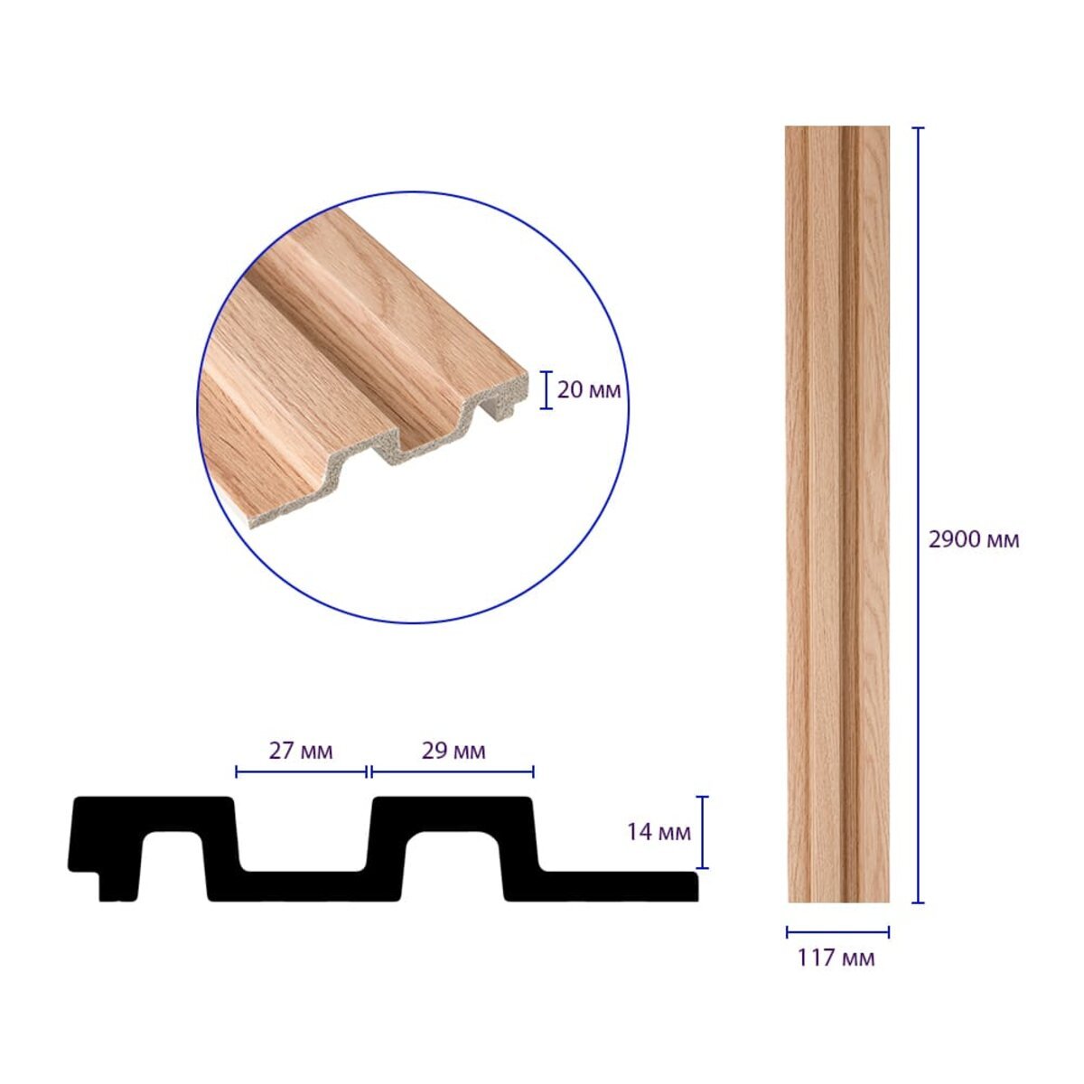 - Розміри: 117х2900х20 мм