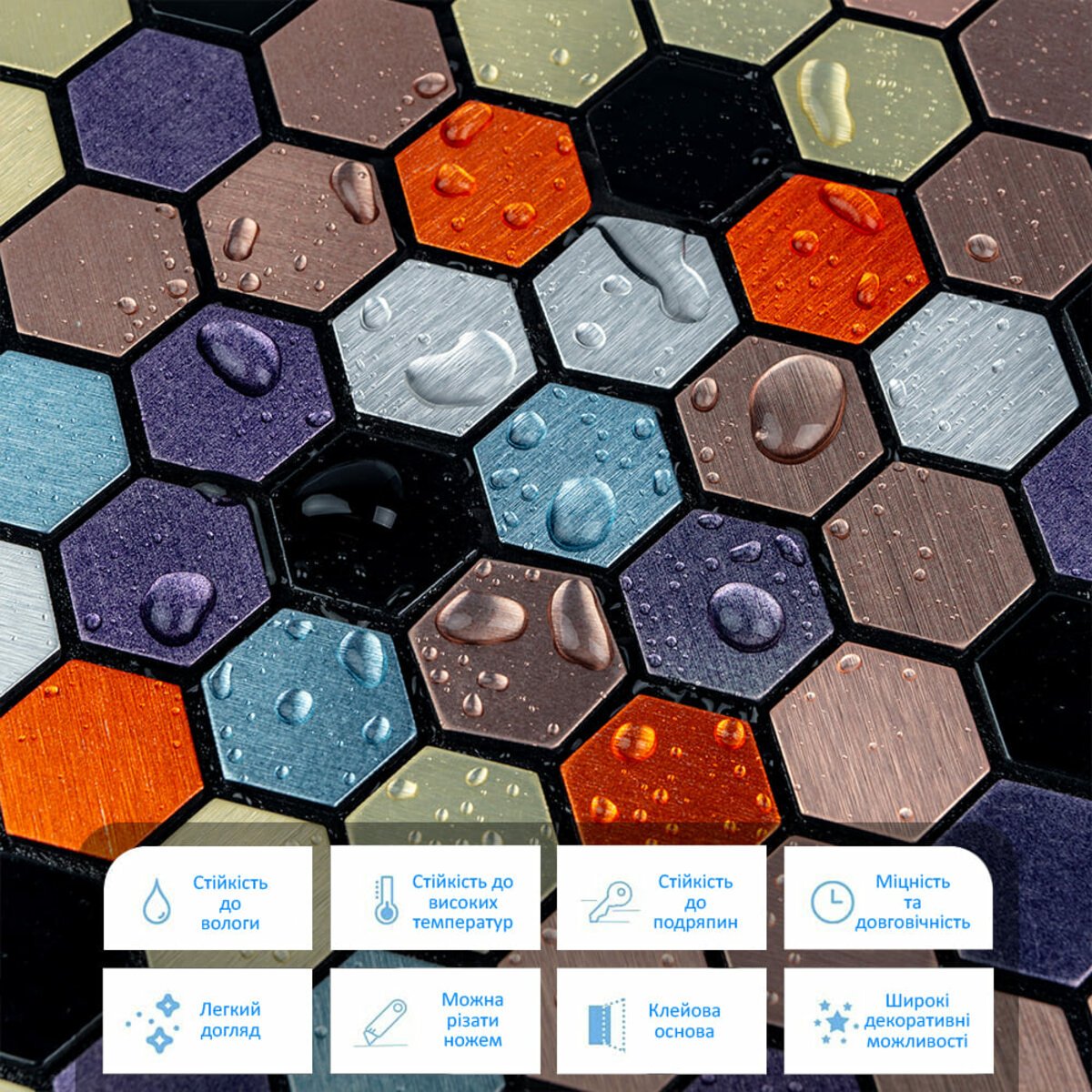 - Легка установка: самоклеюча плитка спрощує процес без додаткового клею.
