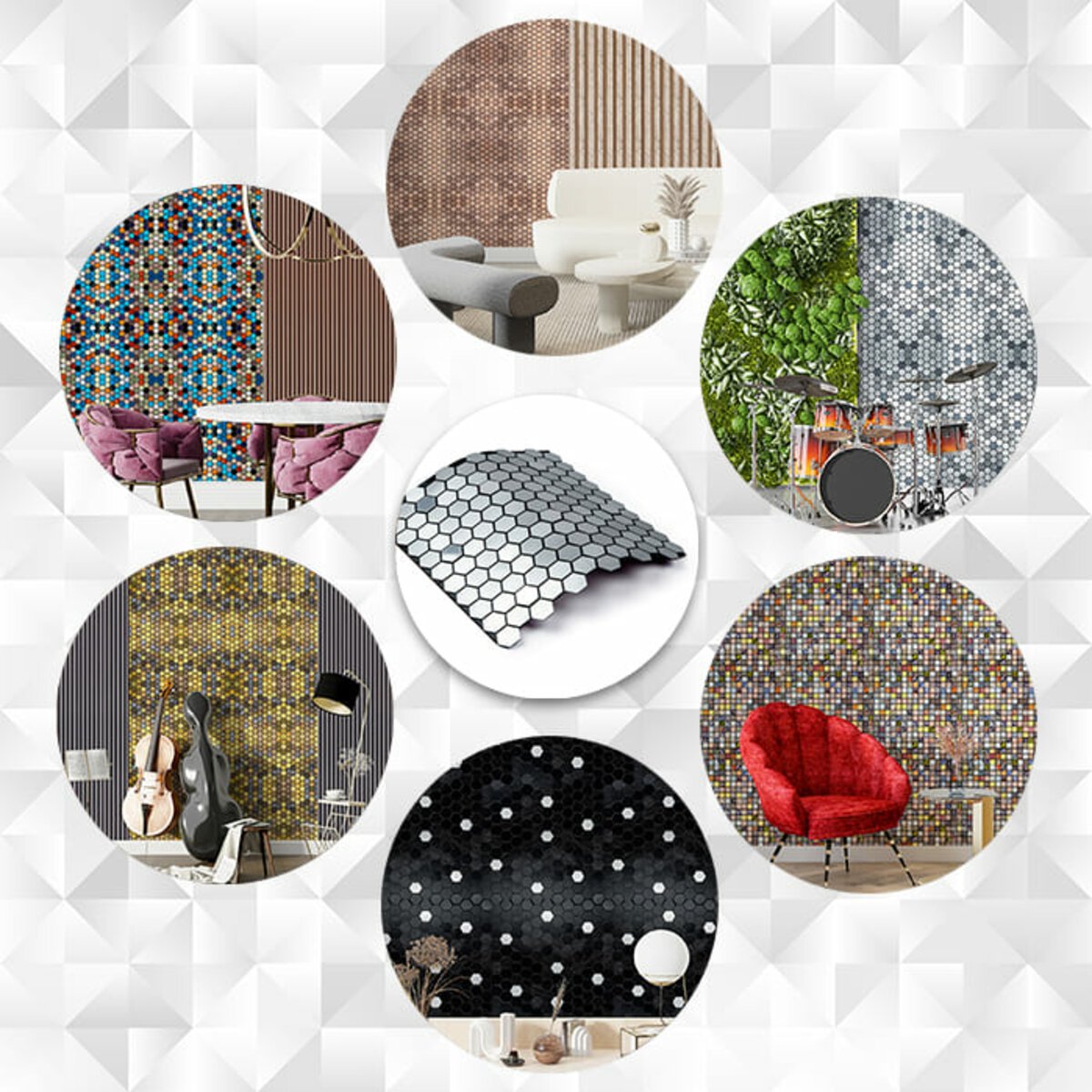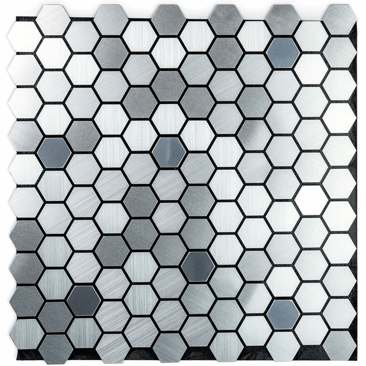 Самоклеюча алюмінієва плитка 300х300х3мм Срібна мозаїка із дзеркальними вставками SW-00001928