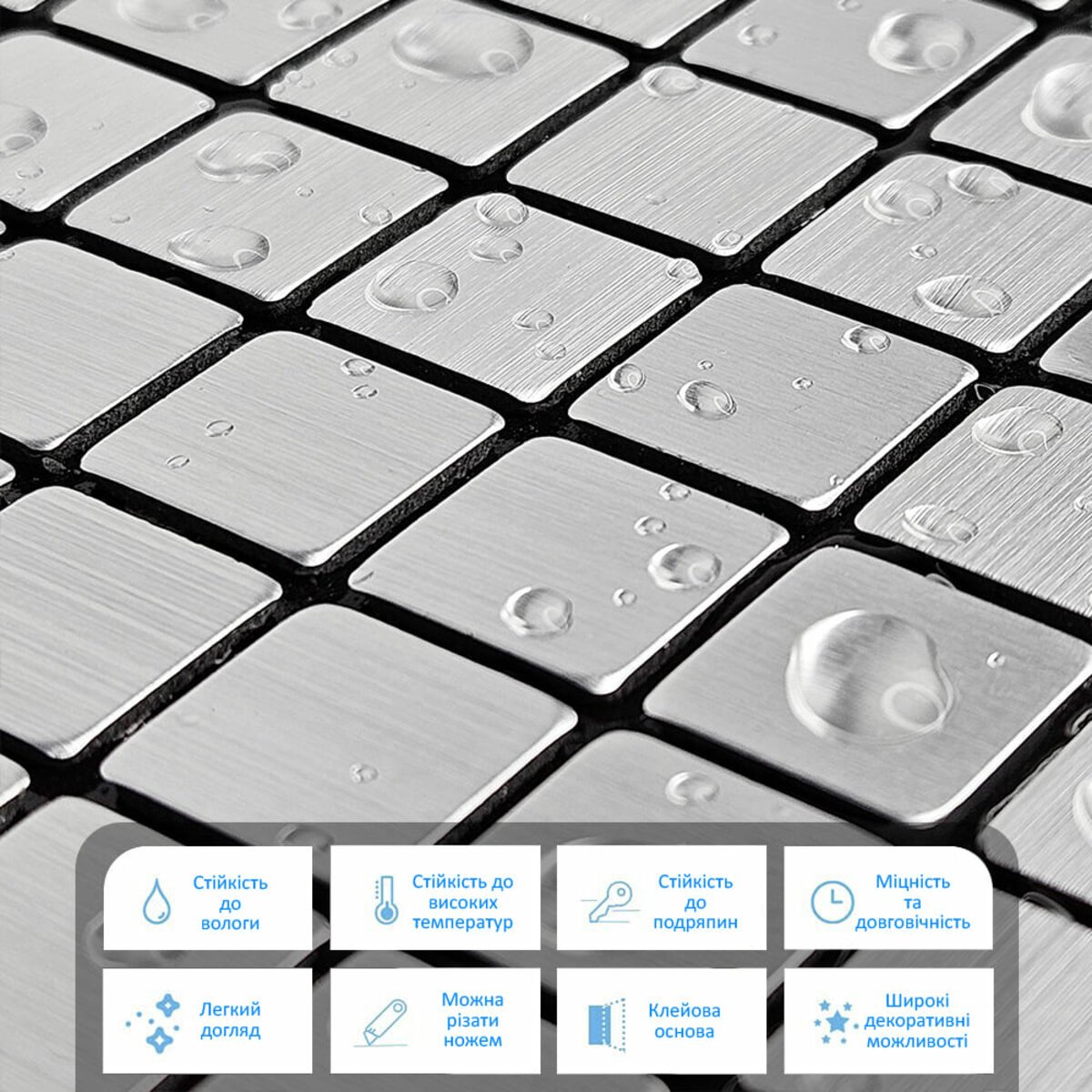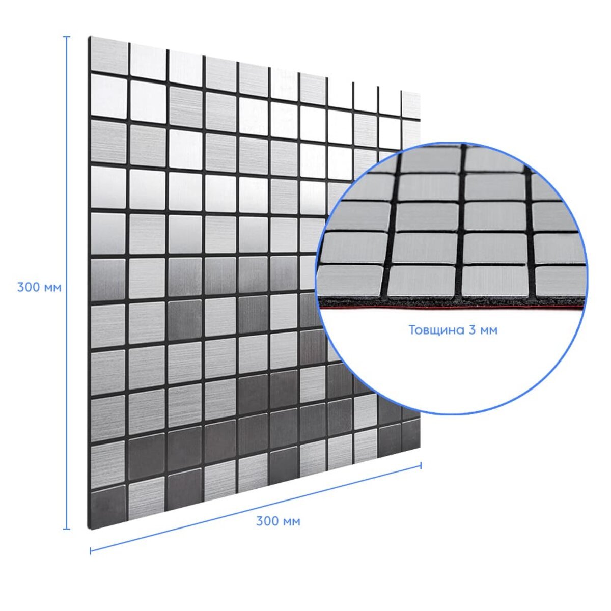 Самоклеюча алюмінієва плитка 300х300х3мм Срібна мозаїка SW-00001167