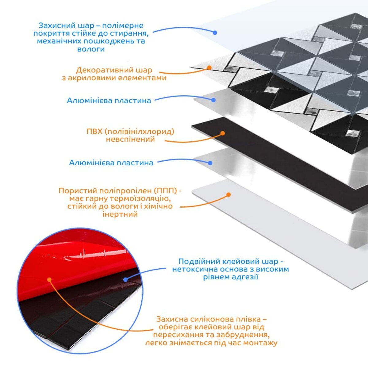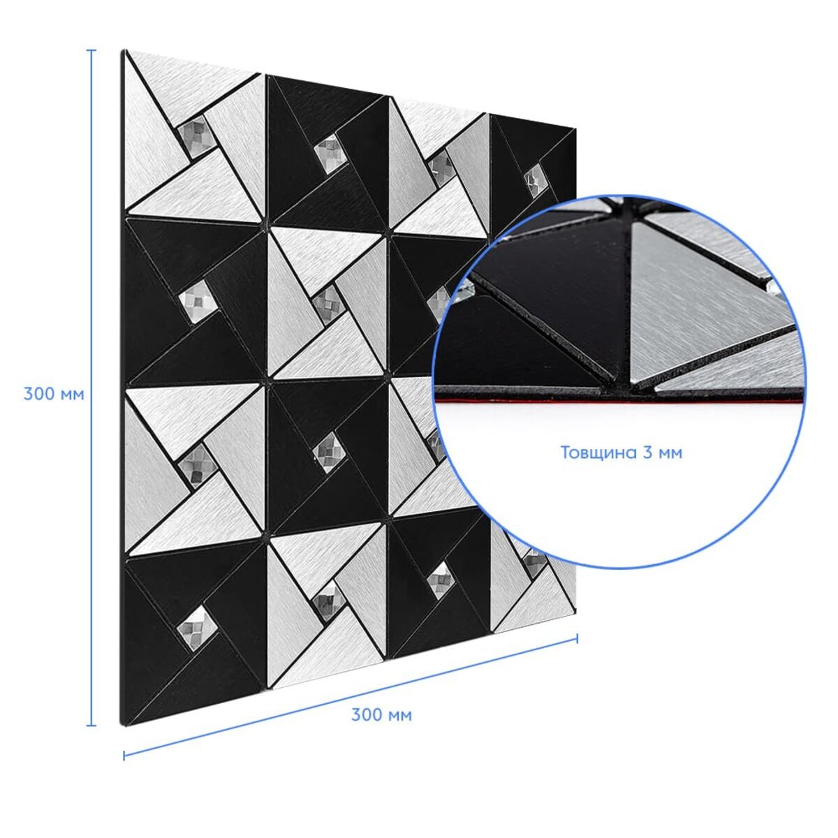 Самоклеюча алюмінієва плитка 300х300х3мм Чорно-срібна зі стразами SW-00001773