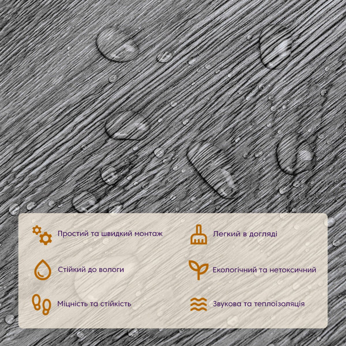 Стійкість до вологи: вінілова плитка під ламінат стійка до вологи, що робить її відмінним вибором для кухні та інших приміщень з підвищеною вологістю, матеріал стійкий також до впливу пари та до появи плісняви.