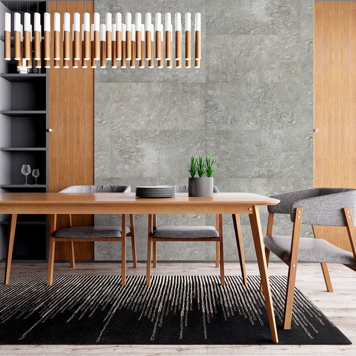 Плитка має різні дизайни, включаючи кольори, візерунки та текстури, що імітують натуральні матеріали та робить її придатною під різні інтер’єрні рішення.