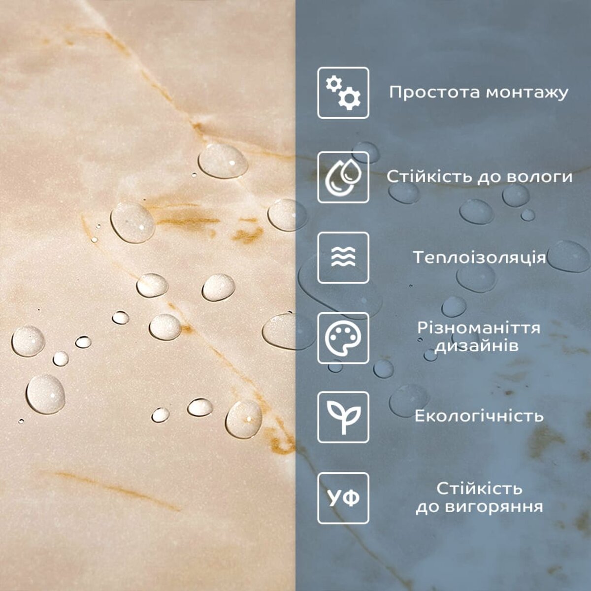 - Захисний силіконізований папір: оберігає клейовий шар від пересихання та забруднення, легко знімається під час монтажу.