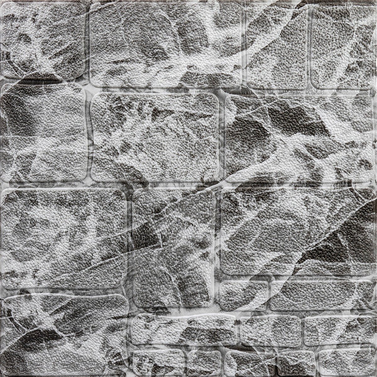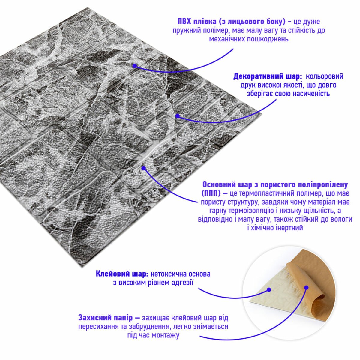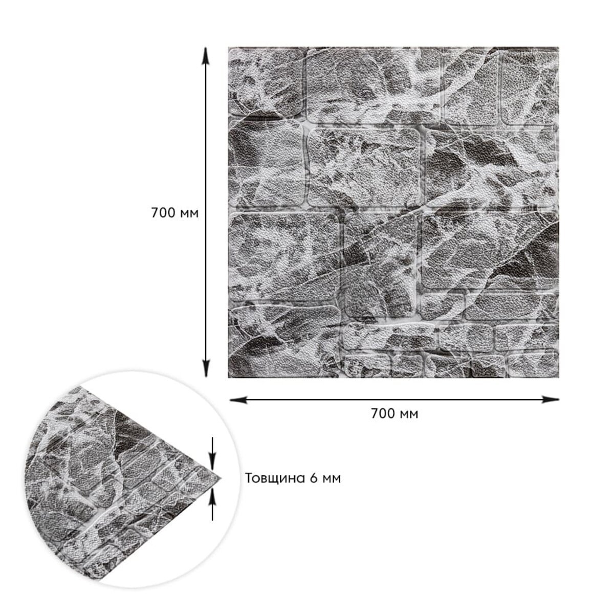 Самоклеюча декоративна 3D панель камінь чорно-білий мармур 700х700х7мм (154)