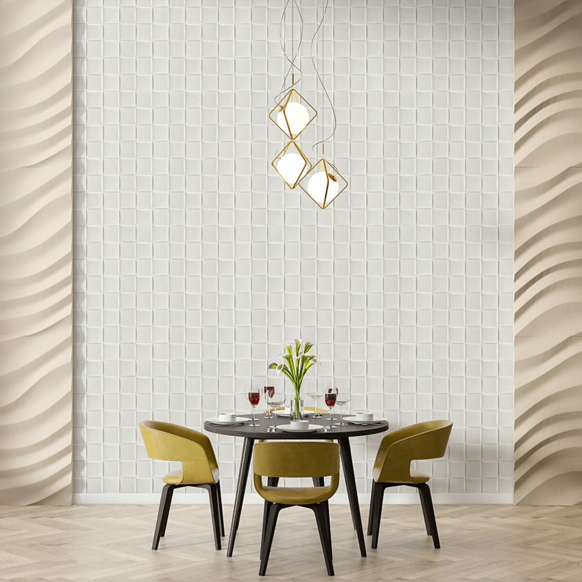 3D панелі підходять для поклейки як у приватному будинку, включаючи мокрі зони на кухні та в санвузлі, так і в громадських місцях.