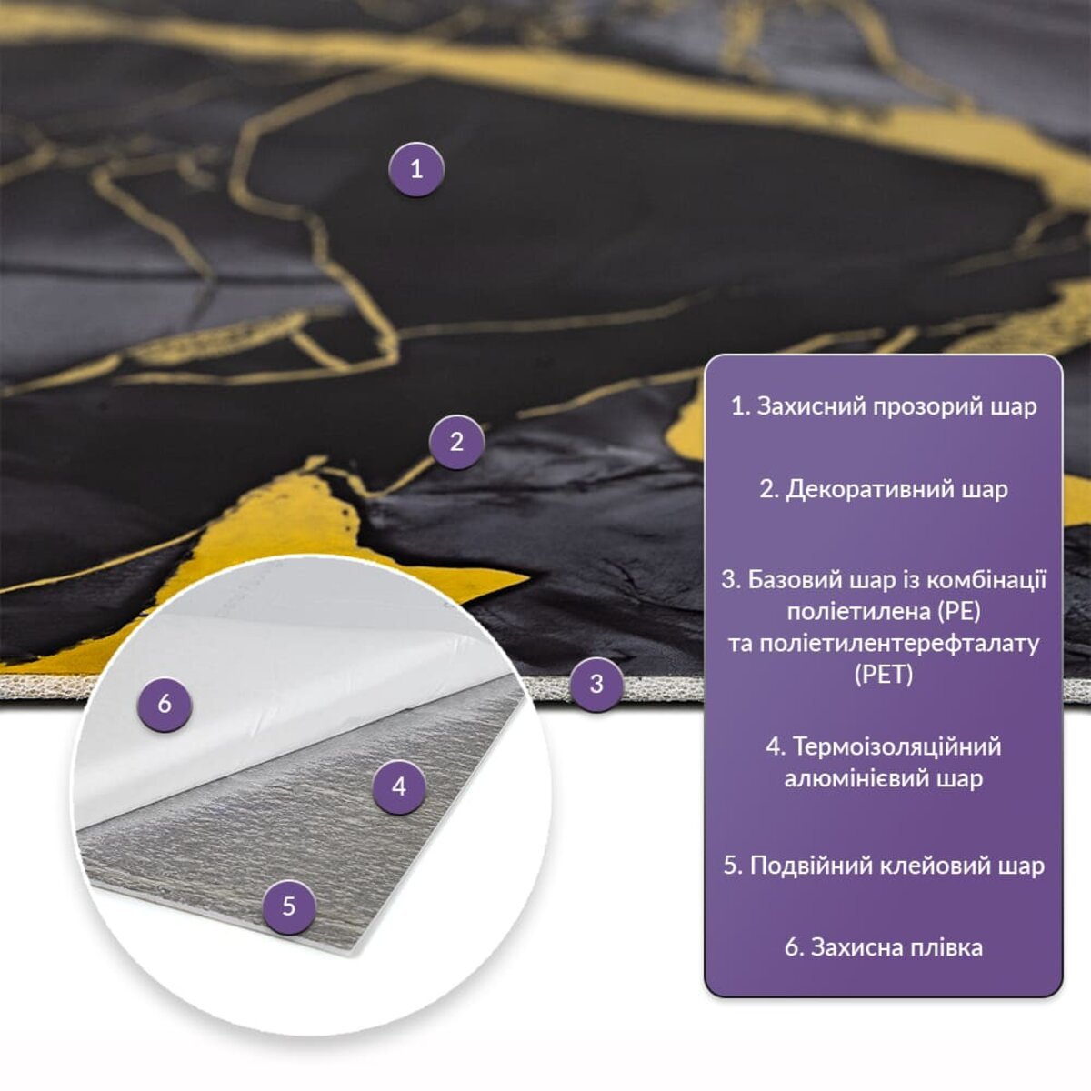 • Базовий шар з комбинації поліетилена (PE) і поліетилентерефталату (PET)
