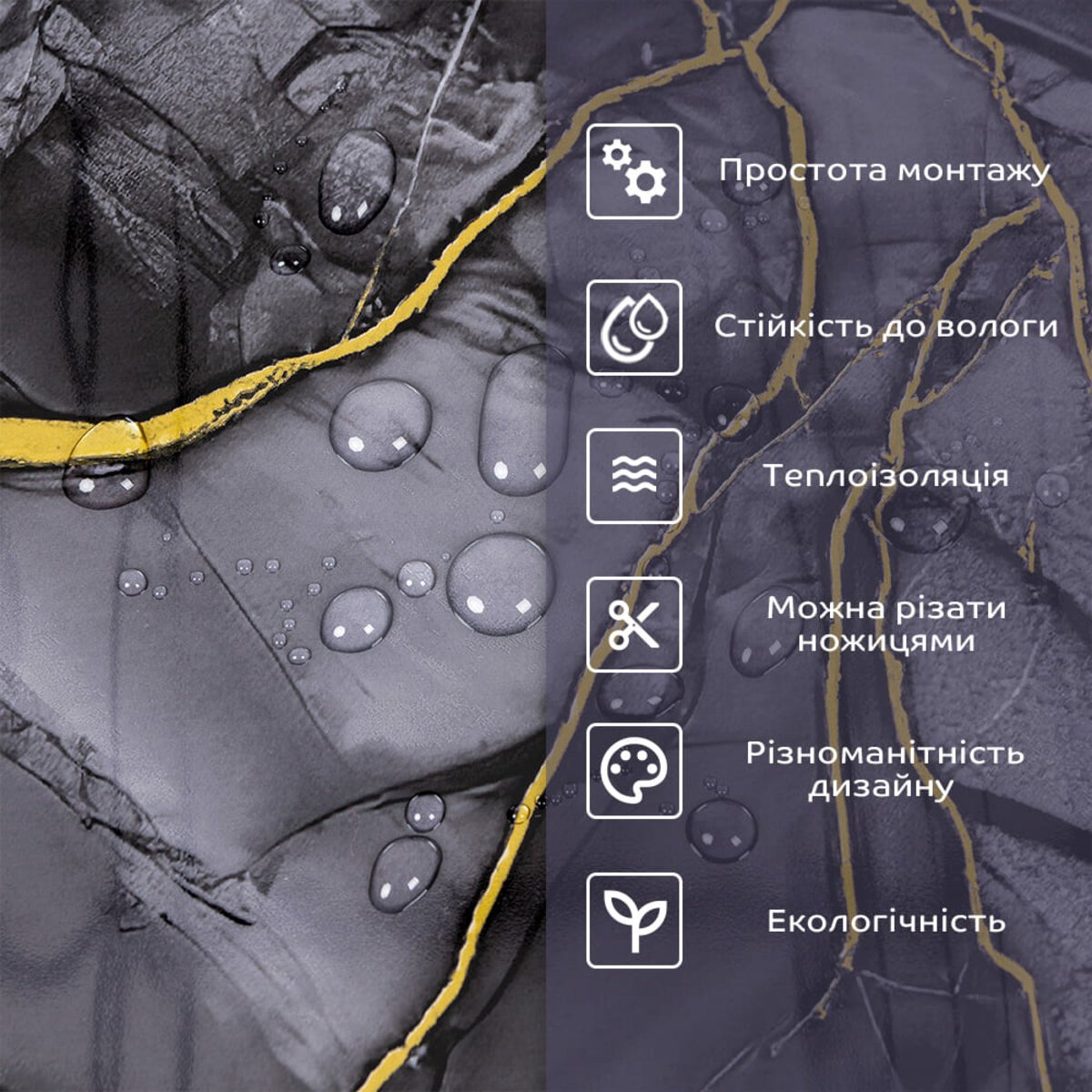 • 2. Стійкість до вологи: матеріал стійкий до впливу вологи та пари, а також до появи плісняви, що робить його придатним для використання у приміщеннях з високою вологістю, таких як ванни та кухні. Плитка підходить для створення фартуха кухні, можна клеїти біля плити на відстані не менше ніж 20-25 см;