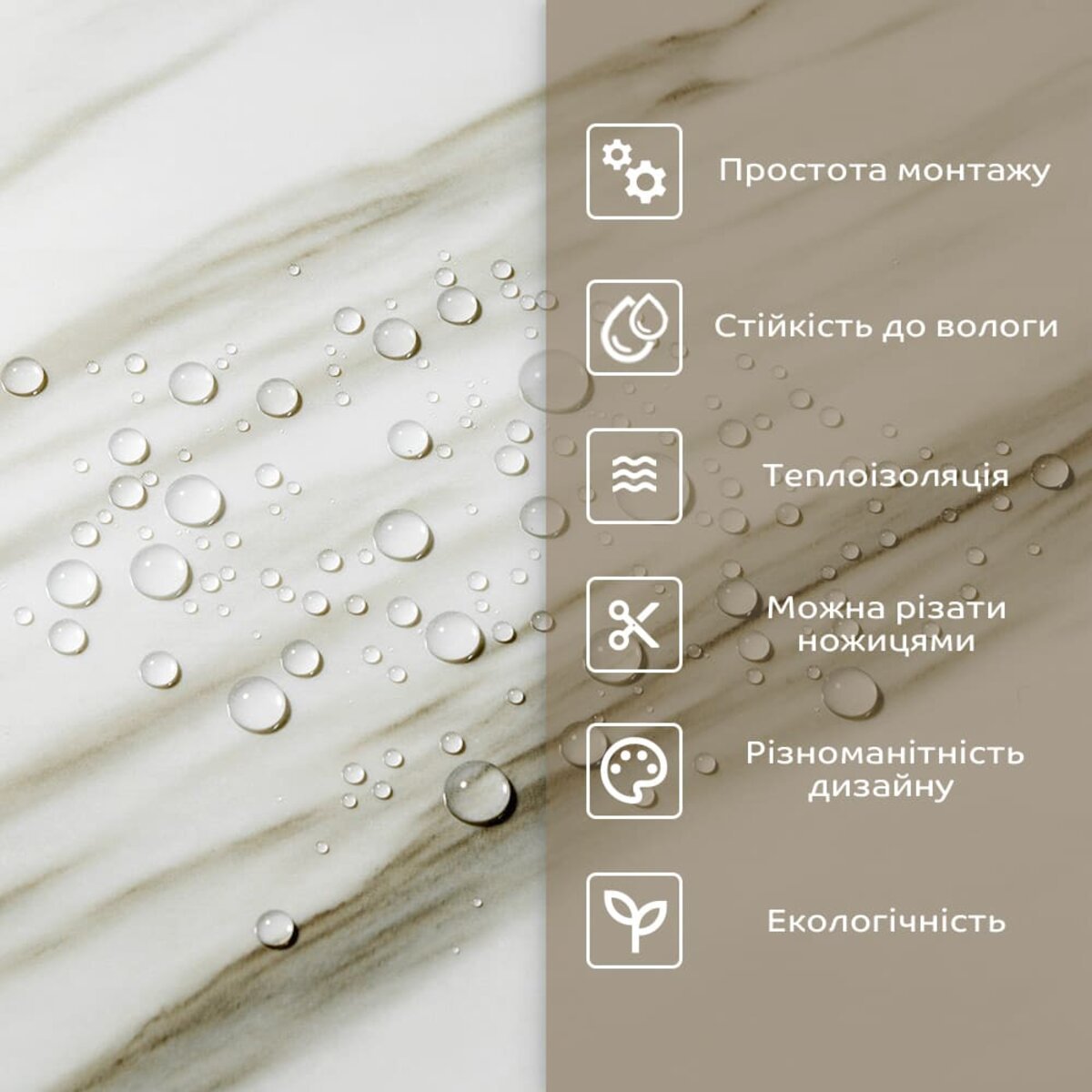 - 2. Стійкість до вологи: матеріал стійкий до впливу вологи та пари, а також до появи плісняви, що робить його придатним для використання у приміщеннях з високою вологістю, таких як ванни та кухні. Плитка підходить для створення фартуха кухні, можна клеїти біля плити на відстані не менше ніж 20-25 см;