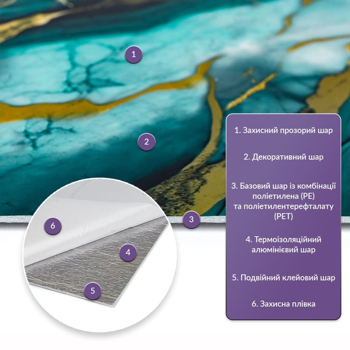- 3. Ізоляція: плитка має звукову та теплоізоляцію завдяки наявності повітряних прошарків та додатковому алюмінієвому шару;
